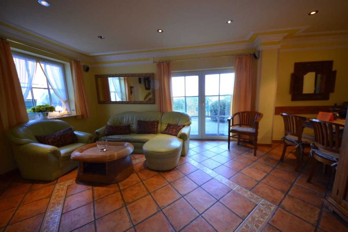 grosszügiges Wohn- Esszimmer, schöne Couchgarnitur mit Opiumtisch,