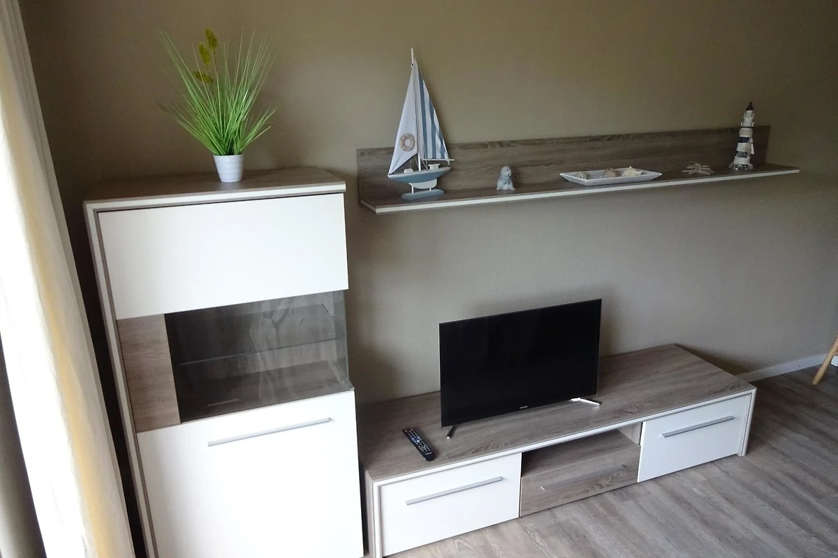 Die Ferienwohnung bietet ein modernes und komfortables Ambiente für erholsame Tage. Sie verfügt über ein Schlafzimmer mit einem Doppelbett sowie ein Wohnschlafzimmer, das mit einem weiteren Doppelbett, einem Einzelbett und einer Schlafcouch ausgestattet ist. Die Küchenzeile ist mit einem Elektro-/Gasherd, Backofen, Kühlschrank, Kaffeemaschine, Toaster und Wasserkocher ideal für die Zubereitung von Mahlzeiten geeignet. Im Duschbad steht ein Haartrockner zur Verfügung. Für Unterhaltung sorgt der TV, während WLAN-Internet für eine reibungslose Verbindung sorgt. Praktische Annehmlichkeiten wie Geschirrtücher, Geschirr und Besteck, Heizung, Rauchmelder, Bügeleisen, Staubsauger und ein Wäscheständer sind ebenfalls vorhanden. Ein Parkplatz und ein Fahrstuhl runden das Angebot ab. Brettspiele bieten zusätzliche Freizeitgestaltung für die ganze Familie. Diese Ferienwohnung ist der perfekte Rückzugsort für einen unvergesslichen Aufenthalt.
