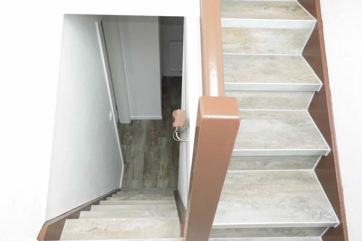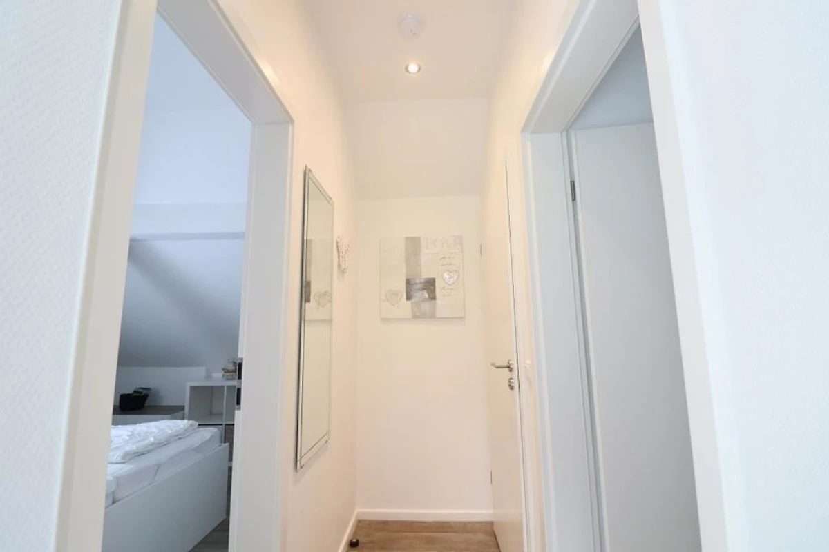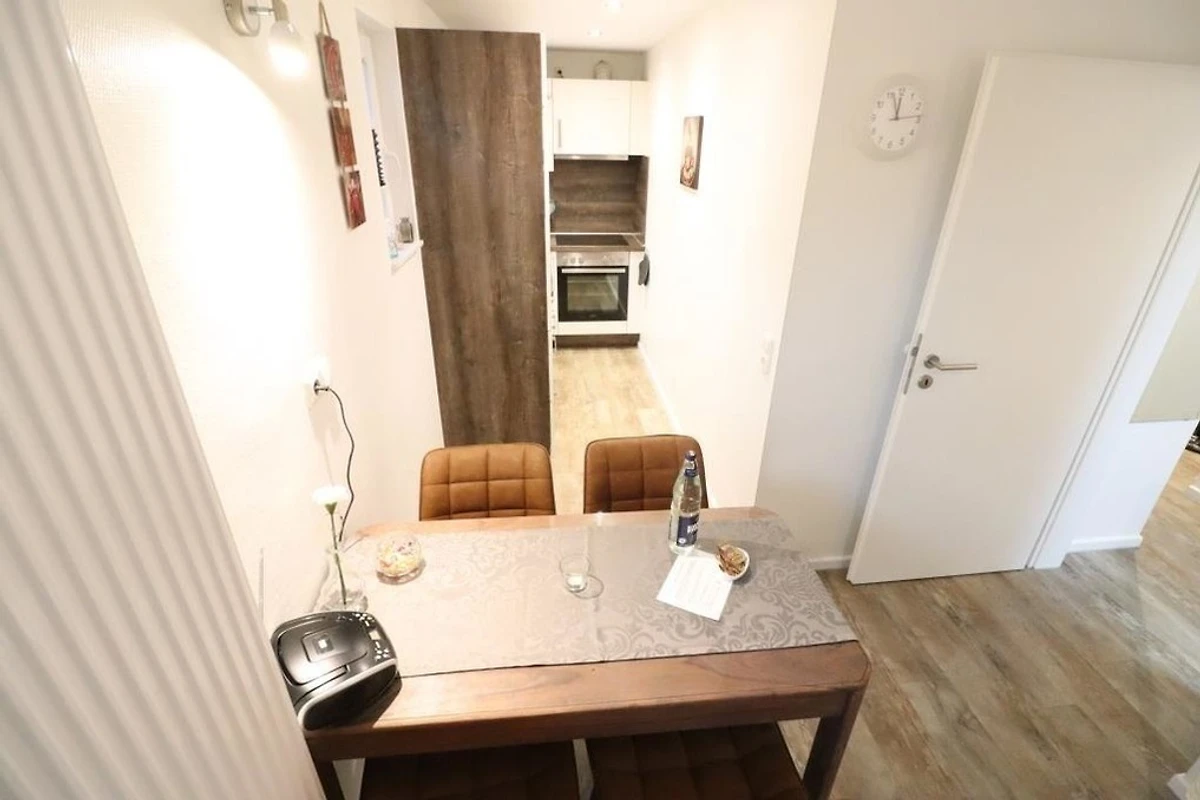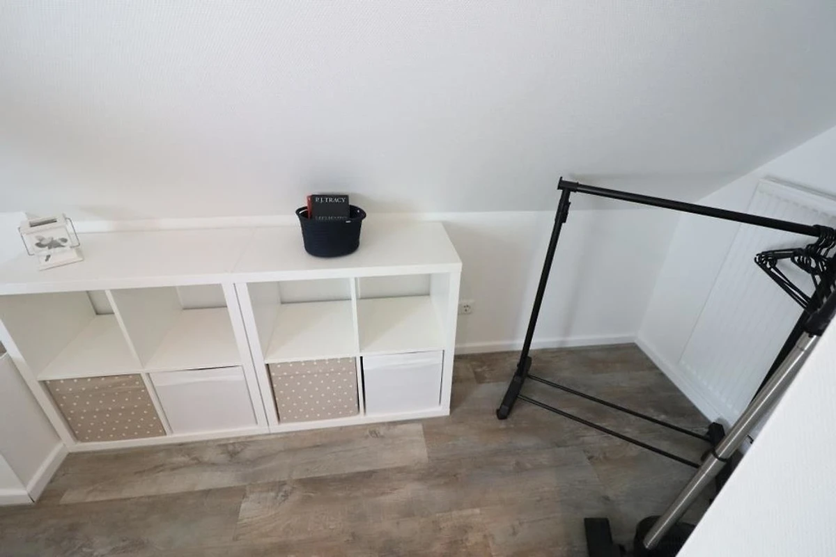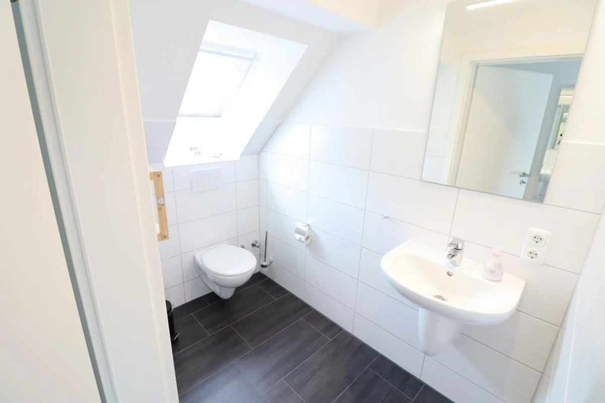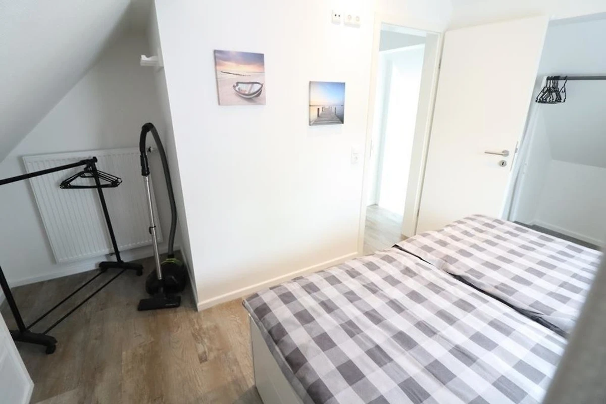 Renovierte Ferienwohnung im 1 OG und DG mit zwei Schlafräumen mit Doppelbetten 1,80mx2m (Schlafräume über Treppe zu erreichen =siehe Fotos), 1 Wohnraum mit Balkon, TV, Radio, neu renoviertes Bad mit Dusche / WC, Föhn, separates WC im Dachgeschoss, Küchenzeile mit Kühlschrank, Gefrierfach, Backofen und Geschirrspüler, Nichtraucher, WLAN kostenlos, Parkplätze am Haus, Gartennutzung, Fahrradunterstellmöglichkeit, Waschmaschine und Trockner gegen Gebühr vorhanden