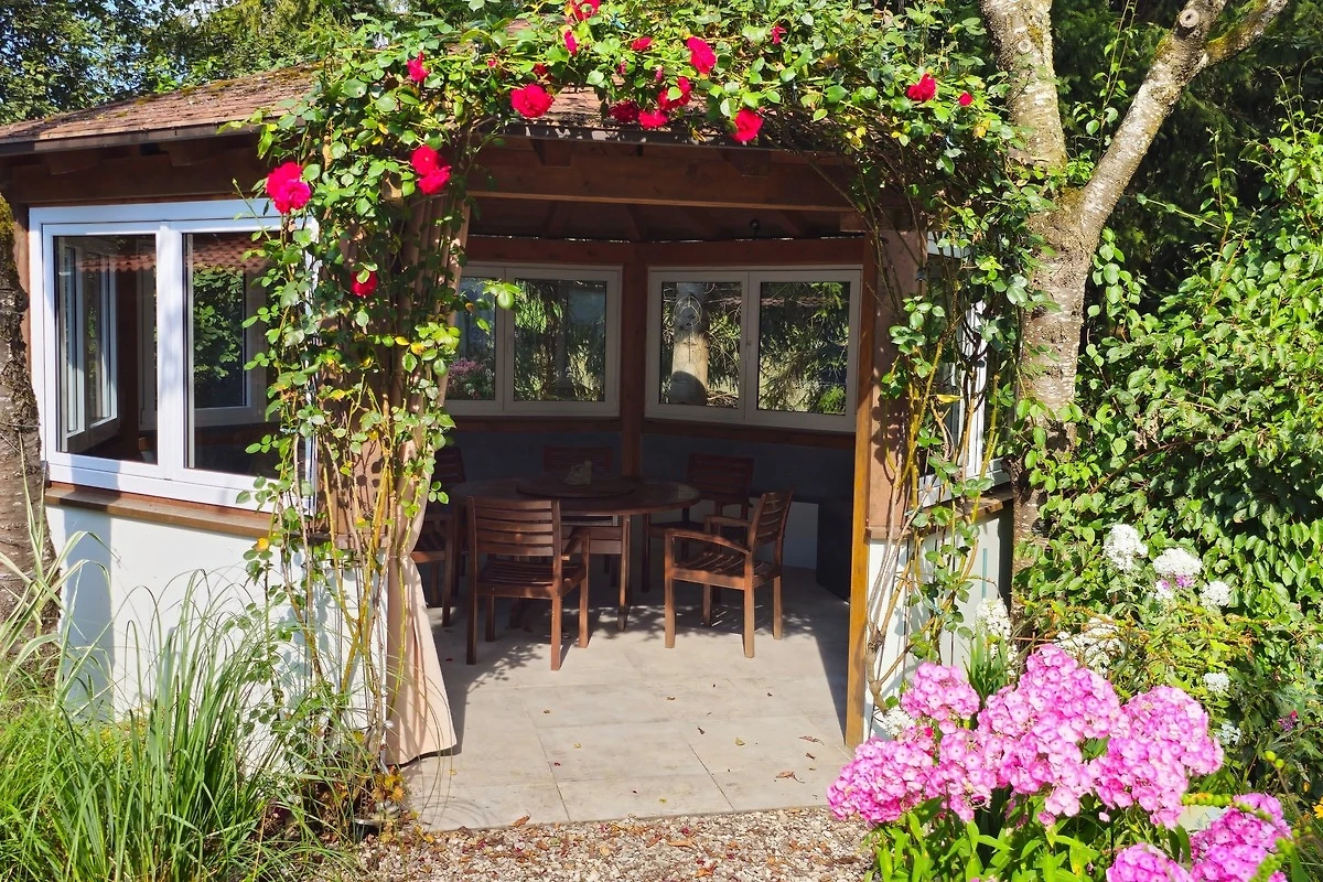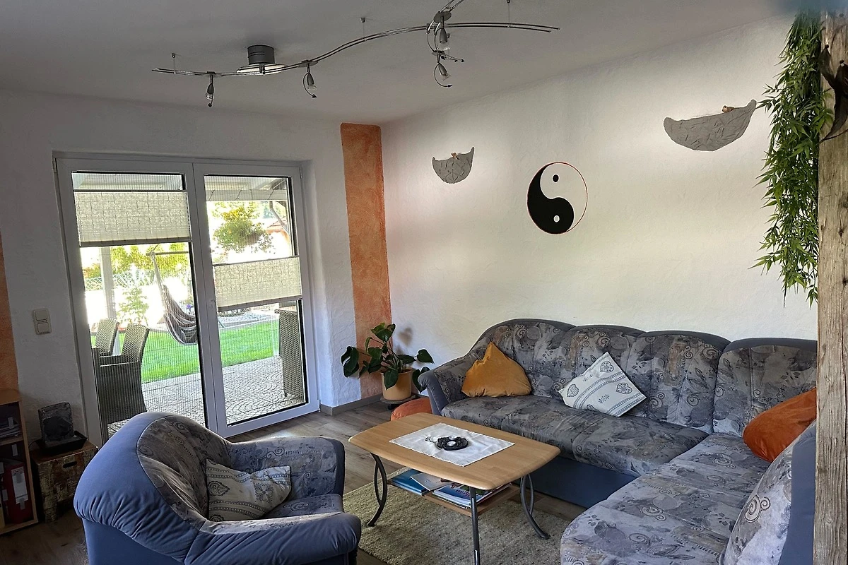 Vom Wohnzimmer kommen sie direkt auf die Terrasse und in den Garten. Diese Anlage wird sie begeistern. Es gibt keine direkten Nachbarn und sie können auf unserem Grillplatz nach Herzenslust grillen. Oder sie lassen einfach nur die Seele baumeln und machen es sich in unseren Gartenstühlen, Liegen oder im Hängesessel bequem.