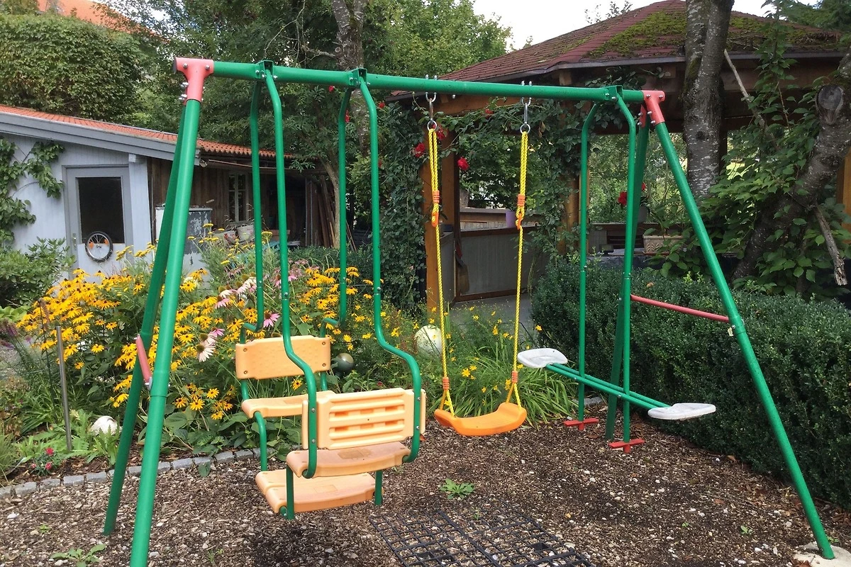 Für die Kinder gibt es einen Wald-Spielplatz mit Trampolin, Kletterseil, Gartenhaus mit Rutsche, Fussballtor und diverse Ballspiele (Federball, Tischtennis usw)