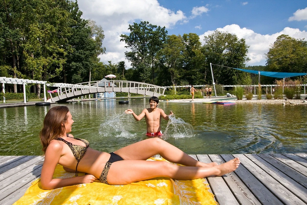 1 Schlafzimmer mit Doppelbett und grossem 3-türigen Kleiderschrank. 1 Schlafraum mit zwei getrennten Betten und eingebautem Hochbett und genügend Stauraum für Kleidung, zweiter LCD-Fernseher mit DVD-Player und Spielekonsole. Dusche/WC mit Hotelfön. Voll ausgestattete Küche mit Geschirrspüler, Kühlschrank mit Tiefkühlfach, Cerankochfeld mit Grill-Backofen, Toaster, Kaffeemaschine, Wasser- und Eierkocher, Handmixer sowie allen erforderlichen Bestecken und Küchenwerkzeugen. Anbau mit Einbauschrank (Elektrogrill, portable Mikrowelle und Stauraum), 5 Terrassenstühle mit Sitzkissen, 2 Sonnenliegen, Sonnenschirm, Wäscheständer, Rodelschlitten, Wäschekorb und -klammern, Untergestell für E-Grill. In Fusswegentfernung zu unserem Haus finden Sie das Naturbad im Schlosspark. Es ist nach aufwändiger Sanierung 2006 wieder eröffnet. Für unsere Gäste gilt freier Eintritt ins Naturbad Stamsried.