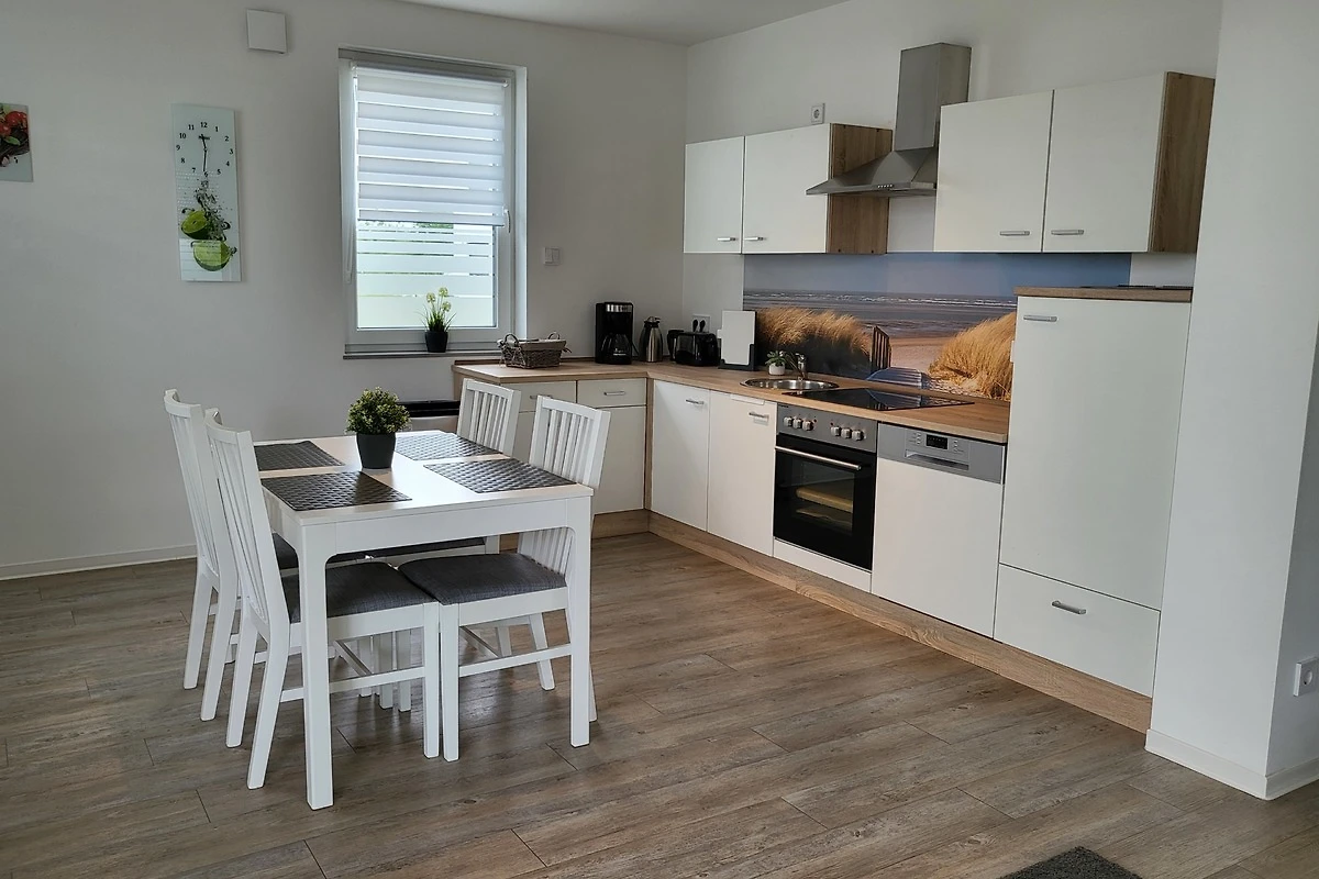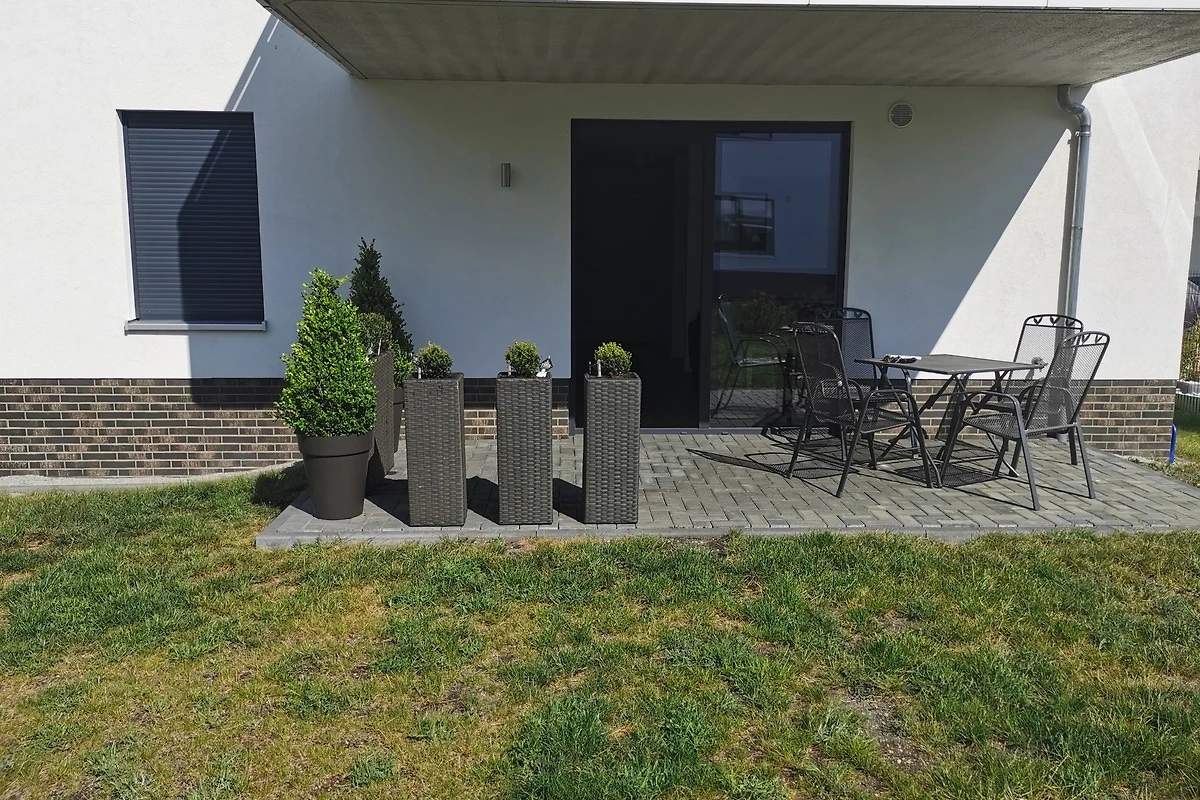 Unsere Ferienwohnung ist auf 65 m² mit max. 4 Personen + auf Anfrage mit einem zusätzlichen Kind belegbar und verfügen neben Vollwertiger Ausstattung über einer möblierten Terrasse und Garten.
