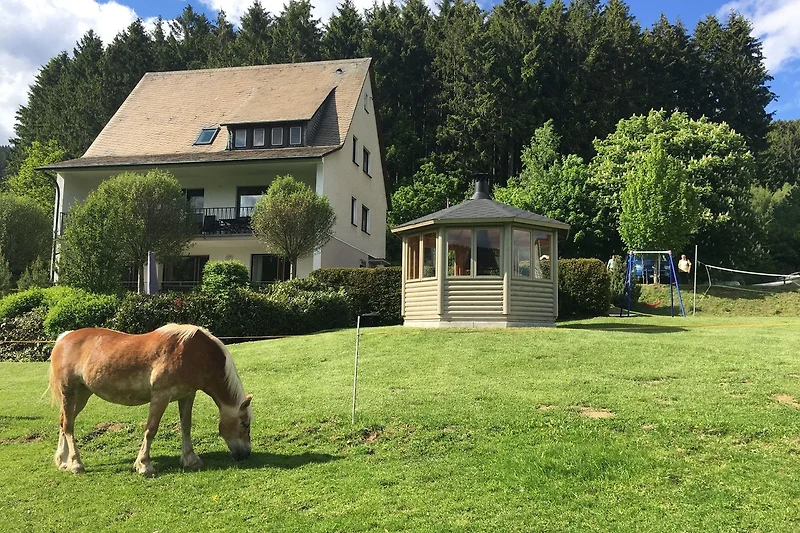 Reichlich Platz und kein Autoverkehr: Diese Kombination ist ideal für Familien mit Kindern. Unsere grosszügigen Aussenanlagen bieten Entspannungsmöglichkeiten für die Erwachsenen sowie Spiel- und Tobeplatz für die Kleinen. Ein grosses Trampolin, Spielgeräte, ein Kinderspielhaus, ein kleiner Bach, ein Tretbecken und ein paar Streicheltieren lassen diese Ferien zu einem unvergesslichen Erlebnis werden. Familiengerechte und spannende Ausflugsziele in der näheren und weiteren Umgebung sind ebenso zu finden wie Wanderrouten von leicht bis anspruchsvoll. Entdecken Sie beispielsweise das Esselbad in Eslohe oder Thikos Kinderland in Schmallenberg. Unsere hauseigenen Fahrräder stehen Ihnen für Radtouren im schönen Sauerland zur Verfügung. Selbstverständlich stellen wir Ihnen auch ein Kinderbett oder einen Hochstuhl während Ihres Aufenthaltes zur Verfügung.