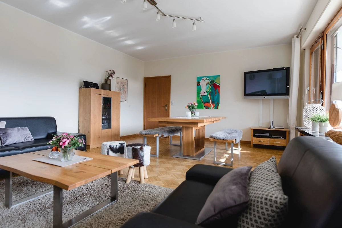 Unser "Landhaus Mettenberg" - 280 qm - max 16 - 18 Personen - mit eigenem finnischen Saunabereich, 7 Schlafzimmern teils mit Flachbildschirmen und Ankleidezimmer,3 Bädern - eines davon mit Badewanne - und WC, 2 Duschen mit WC und einer zusätzlichen Dusche, 3 überdachten Balkonen, einem grossem Esstisch in der separaten Küche und einem grossen Spieletisch im grossen Wohnzimmer und einer Wii - Spielkonsole. Ausgestattet wurde es mit wertvollen Parkettböden, ausgesuchten Möbeln und Inventar, welches man von einem Landhaus erwarten darf. Wasch- und Trockenraum befindet sich im unteren Bereich des Hauses.