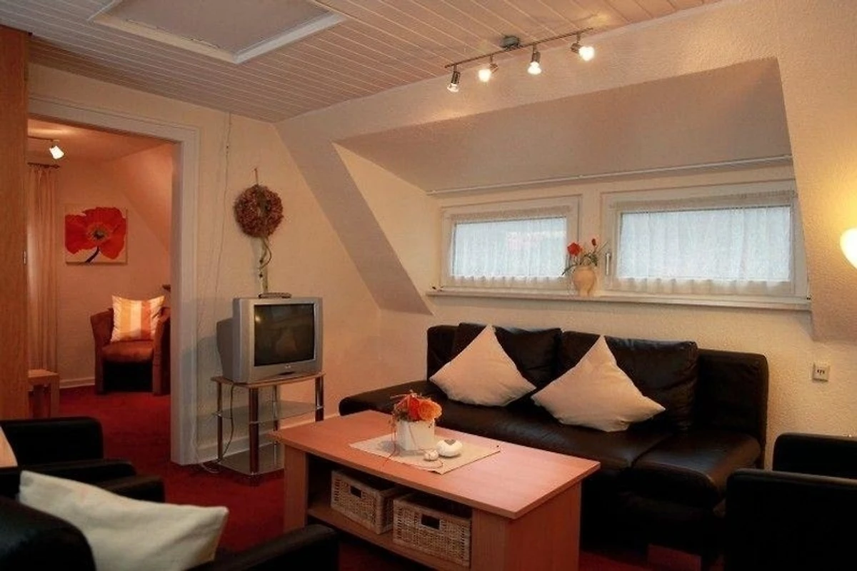 Obergeschoss:1*Schlafzimmer mit 1*Doppelbett (Boxspringbetten), 1* Schlafzimmer mit 2* Einzelbett, Wohnzimmer (Radio, Kabel-TV,DVD, Wii-Spielkonsole)