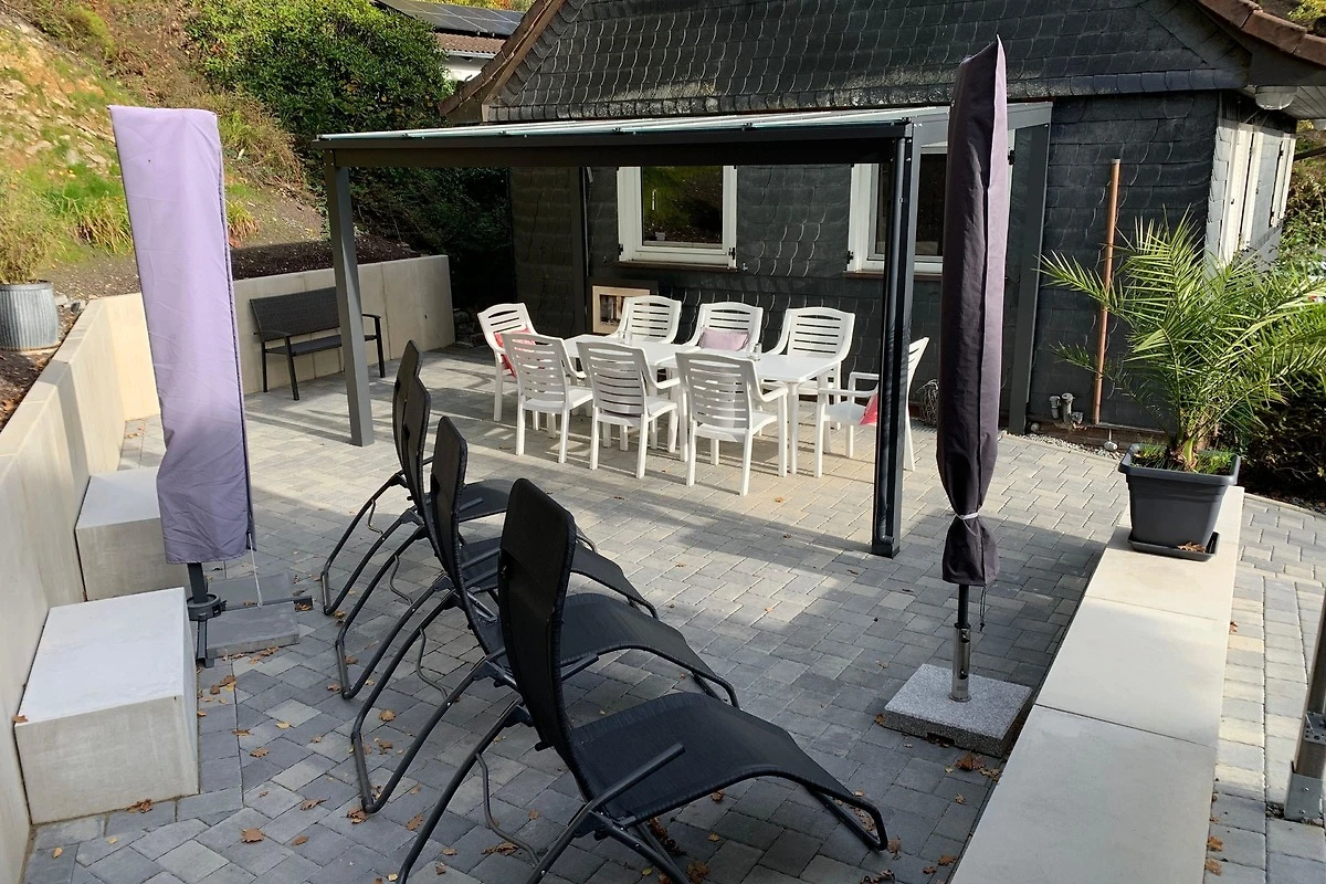 Terrasse, Wiese, Garten, Weber-Grill, Grillkamin,Liegestühle, eigenem Stellplatz