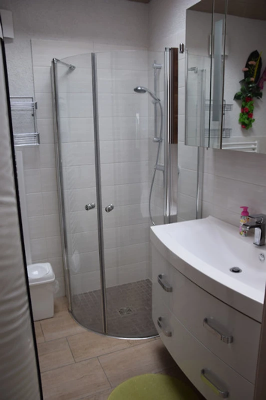 • im grosszügigen Bad befindet sich ausser dem WC eine Duschkabine. Sie verspricht Ihnen Entspannung pur, nach einem ereignisreichen oder anstrengenden Tag. Eine Waschmaschine ist ebenfalls vorhanden