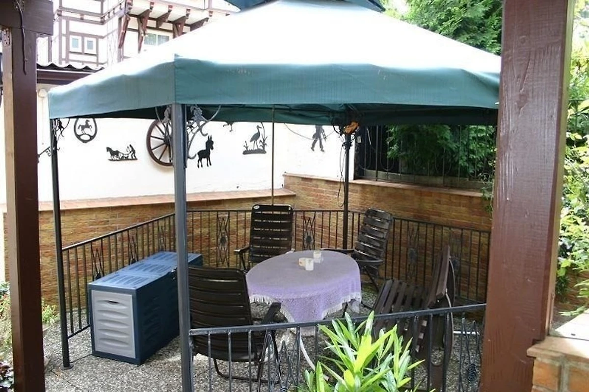 Im Garten sind Sitzecken und Liegestühlen sowie ein Grill . An der Wohnung befindet sich ein Balkon mit Tisch und 4 Gartenstühlen.