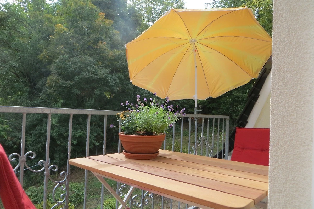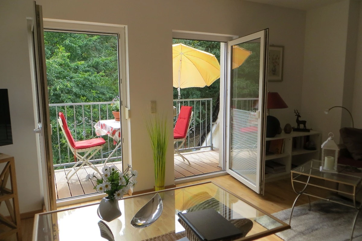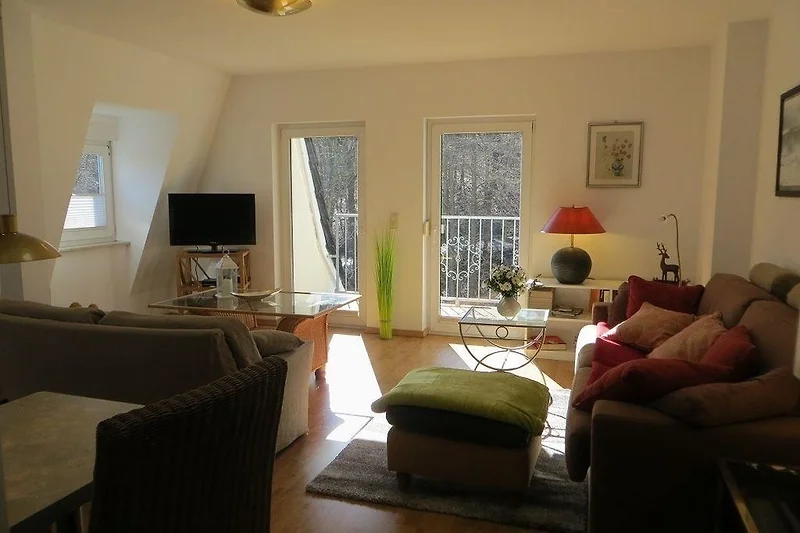 Sie haben einen Südbalkon und rundum einen wunderschönen unverbauten Blick in den Wald oder auch in den gegenüberliegenden Kurpark.