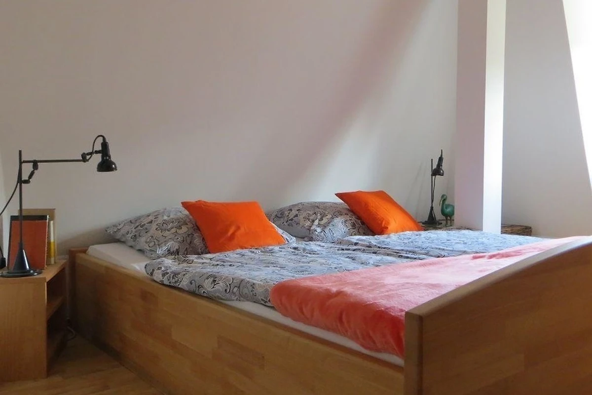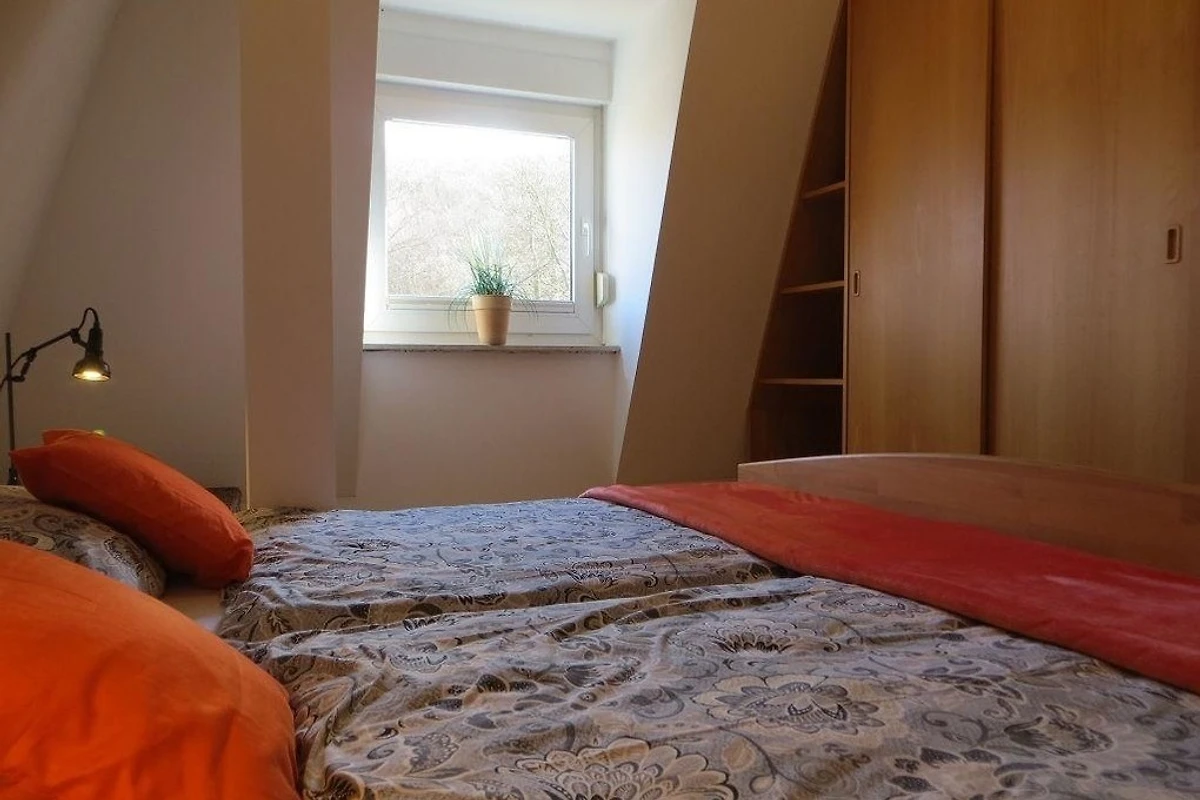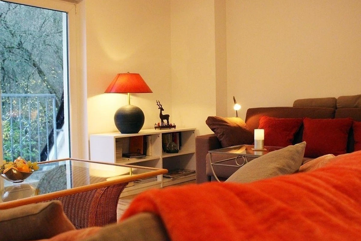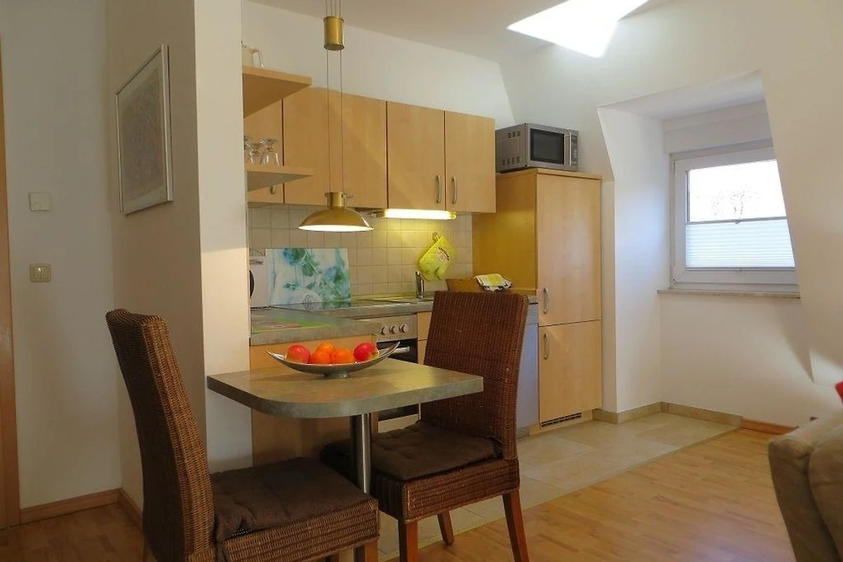 Die Wohnung befindet sich im Obergeschoss, ist ca. 60 Quadratmeter gross und hat ein Badezimmer, ein Schlafzimmer und ein Wohnzimmer mit integrierter Küche. Es besteht die Möglichkeit, dass noch zwei weitere Personen auf einem grossen Bettsofa im Wohnzimmer übernachten können.