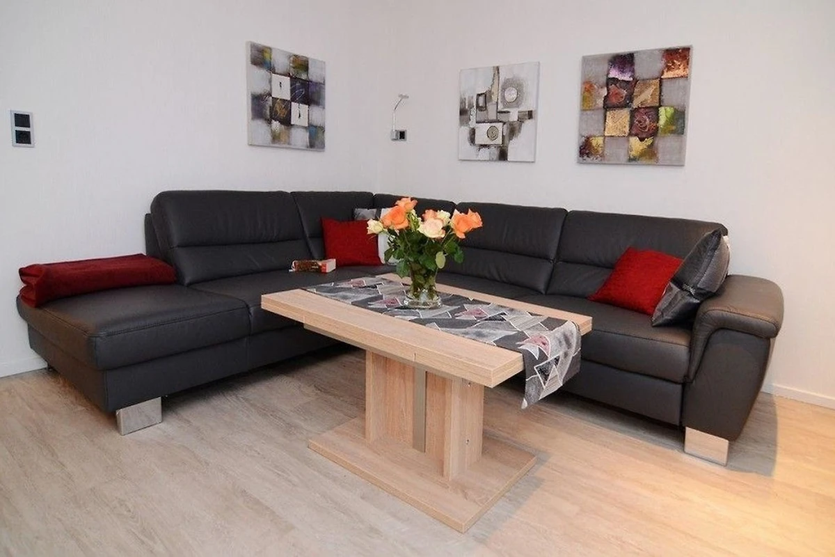Das elegante und gemütliches Ecksofa ist für einen weiteren Schlafplatz nutzbar.