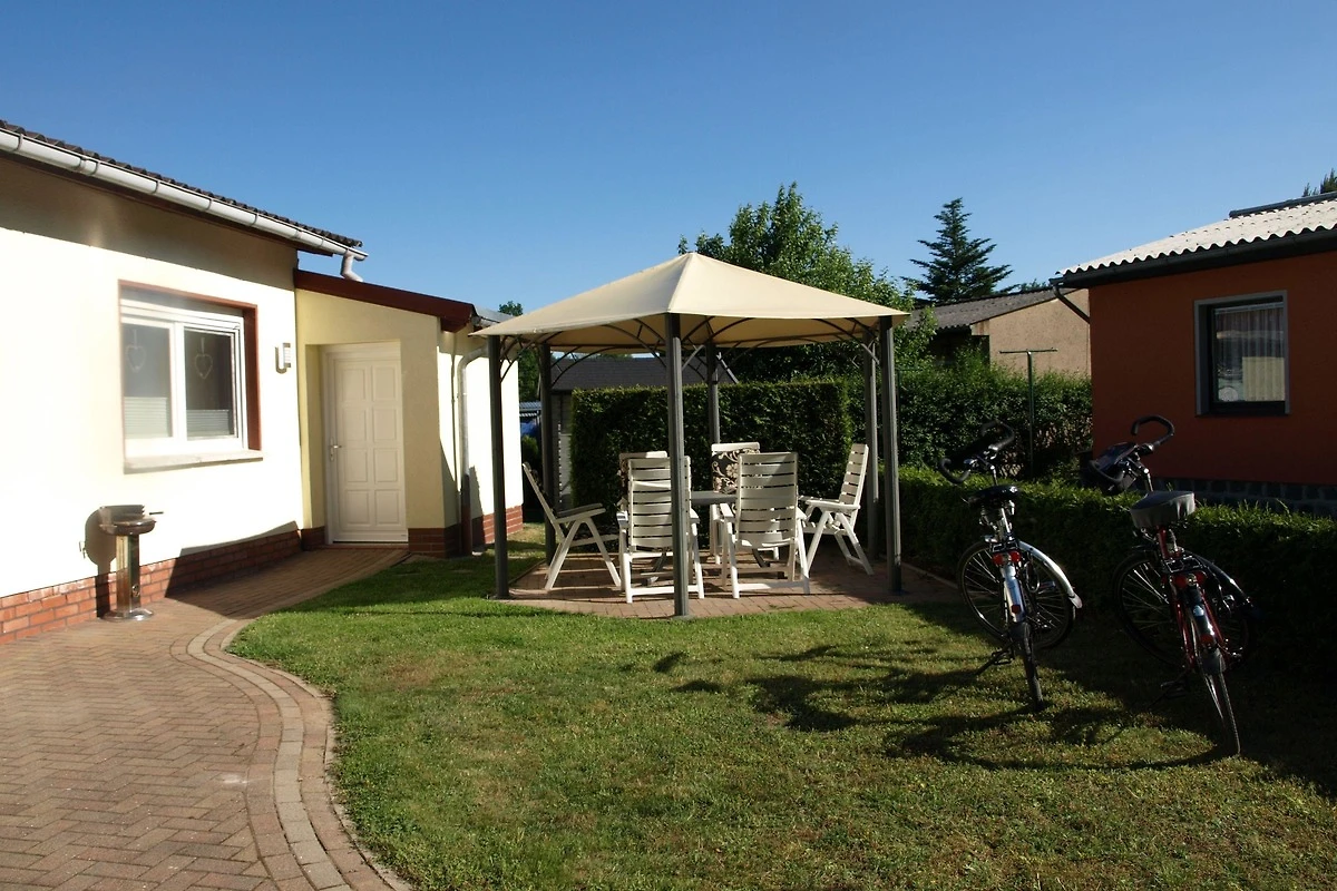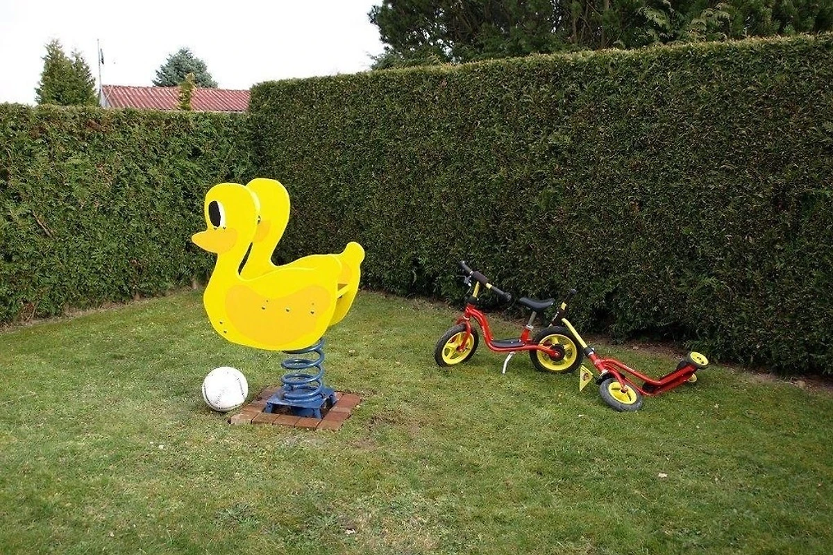Das Haus steht auf einem komplett mit einer Grünhecke eingefriedetem Grundstück. Am Eingang befindet sich ein Gartentor. Von hier gelangen Sie über die grosse Terrasse zum Eingang des Ferienhauses. Es stehen insgesamt 2 Terrassen mit ausreichend Gartenmöbel, Sonnenliegen und Grill zur Verfügung. Für Schatten sorgt ein Pavillon im Garten.