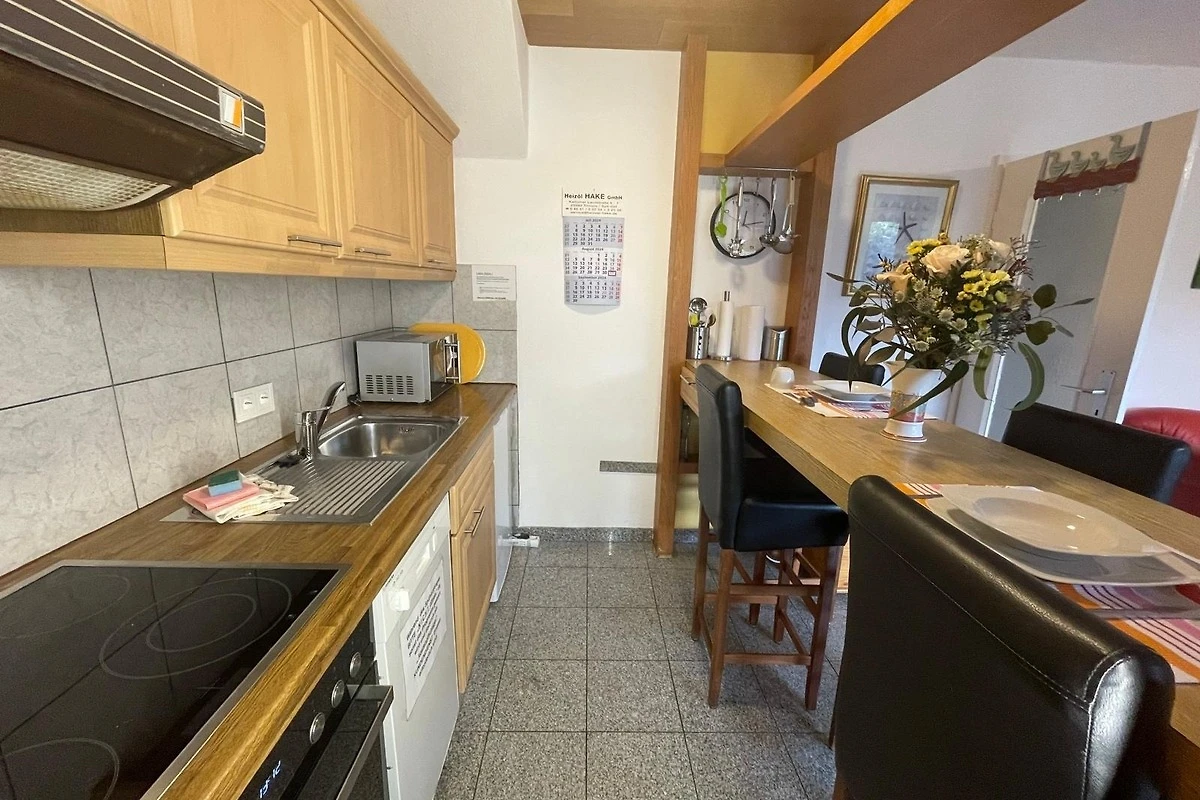 Dei Ferienwohnung verfügt über eine komplett eingerichtete Küchenzeile mit