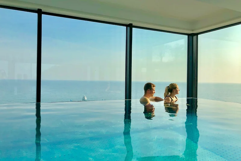Wellness pur bieten ihnen die in der Wohnung intergrierte B-Intense/Physiotherm Infrarotkabine sowie die 2 grossen klassischen Panorama- Saunen und der grosse Panorama-Pool im 6. Stock des Hauses. Hier haben sie einen atemberaubenden Blick über das Meer, bis hin zu den Rügener Kreidefelsen und können im Indoor Wellnessbereich oder aber auf den grossen Dachterrassen ihren Aufenthalt geniessen. In den Sommermonaten stehen ihnen zusätzlich ein grosser Dünengarten mit grossem, solarbeheiztem Pool und Sonnenliegen zur Verfügung.