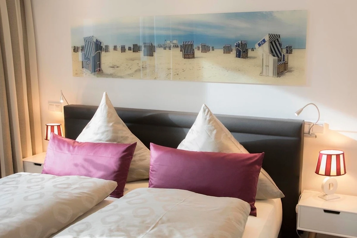 Unser 101 qm Apartment im 2. O.G. verfügt über 2 Schlafzimmer, jeweils mit Kingsize Boxspringbett, Flachbildfernseher, Sonos Musiksystem und grossem Schrankangebot für ihr Gepäck.