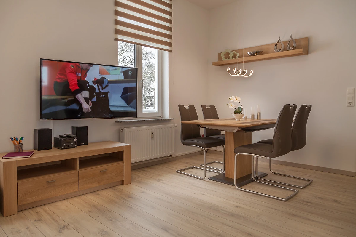 Wie der Name schon sagt, gehört zu "Am Schlosspark " auch die grössere Ferienwohnung (115 qm) "Am Schlosspark", somit können wir sogar bis zu 12 Personen gemütlich bei uns unterbringen.