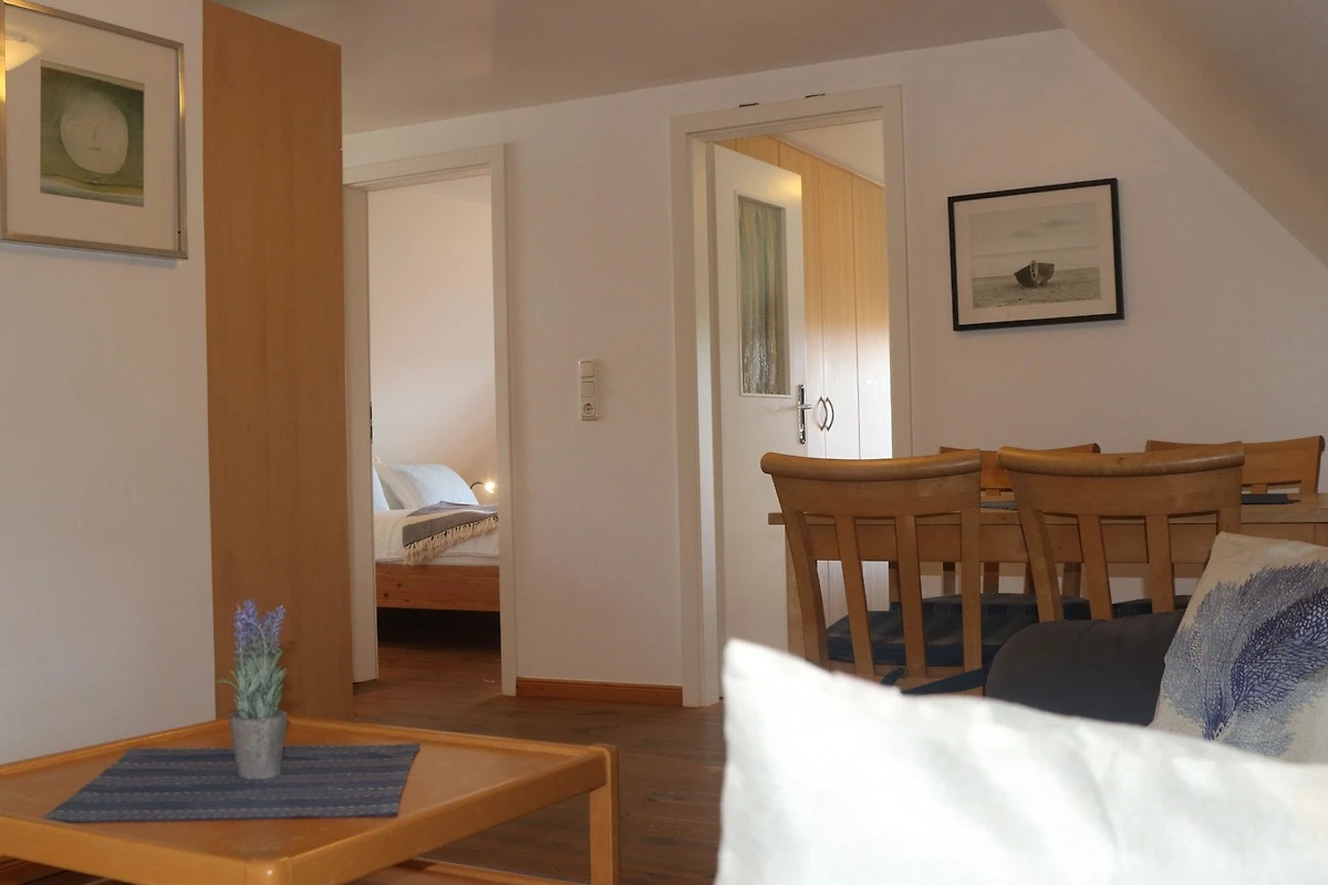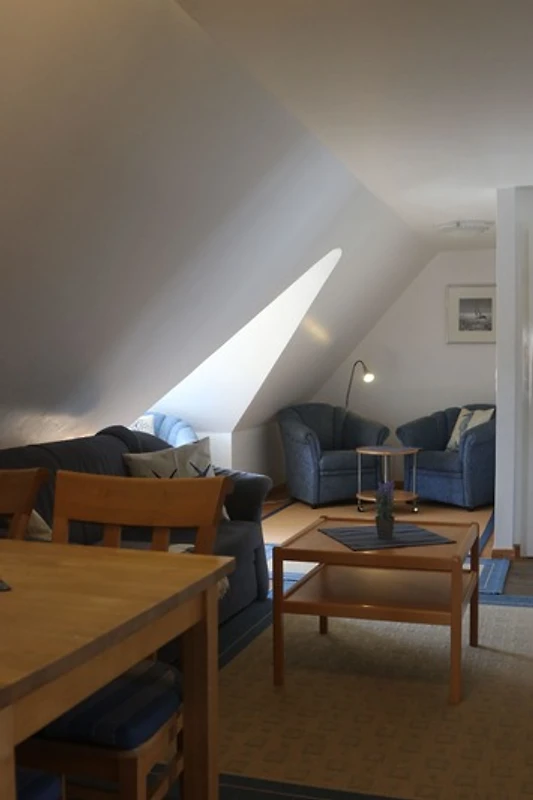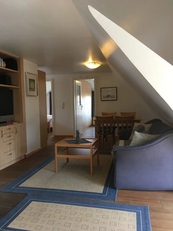 Unser Appartement 2 im Obergeschoss bietet auf 65 qm viel komfort: in der gemütlichen Wohnküche unserers Appartements finden Sie eine Komplettausstattung incl. Backofen, Geschirrspüler und Mikrowelle. Das Appartement hat zwei Schlafzimmer mit grossen Einbauschränken. Im Wohnzimmer gibt es neben dem Fernsehbereich auch eine gemütliche Leseecke am Dachfenster.