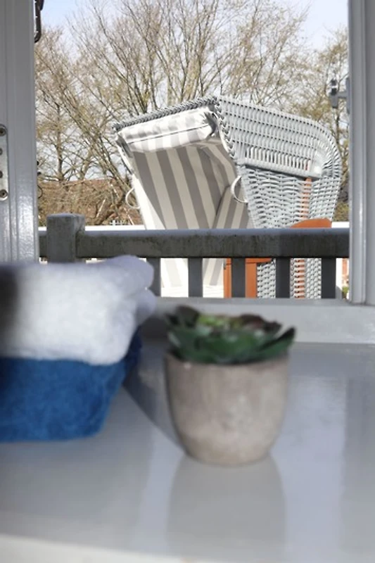 Zum Appartment gehört eine Terrasse vor der Wohnung inkl. Strandkorb und Deckchairs, die bei gutem Wetter zu einem langen Frühstück einladen.