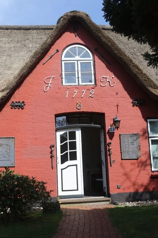 1855 wurde diese alte Dorfschule als "Lütt School" gebaut und war bis in die 50er Jahre eine einklassige Dorfschule. Das reetgedeckte Gebäude liegt inmitten eines parkähnlichen Gartens in St. Peter-Dorf, nur wenige Fussminuten vom Deich und der davorliegenden Sandbank entfernt.