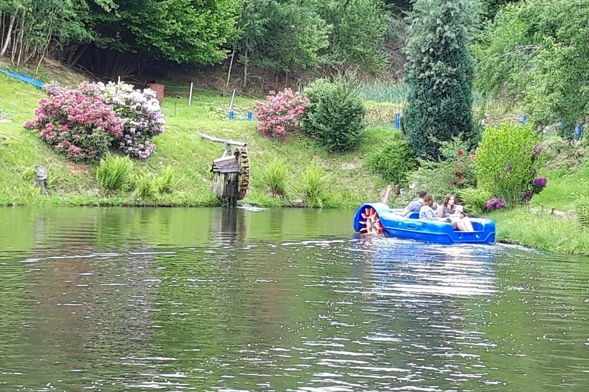 Eine Tischtennisplatte, Trampolin laden zu Spiel und Spass ein. Die Ferienwohnung befindet sich in idyllischer Umgebung mit Gondelteich und bietet beste Voraussetzungen für einen entspannten Urlaub im Nationalpark.
