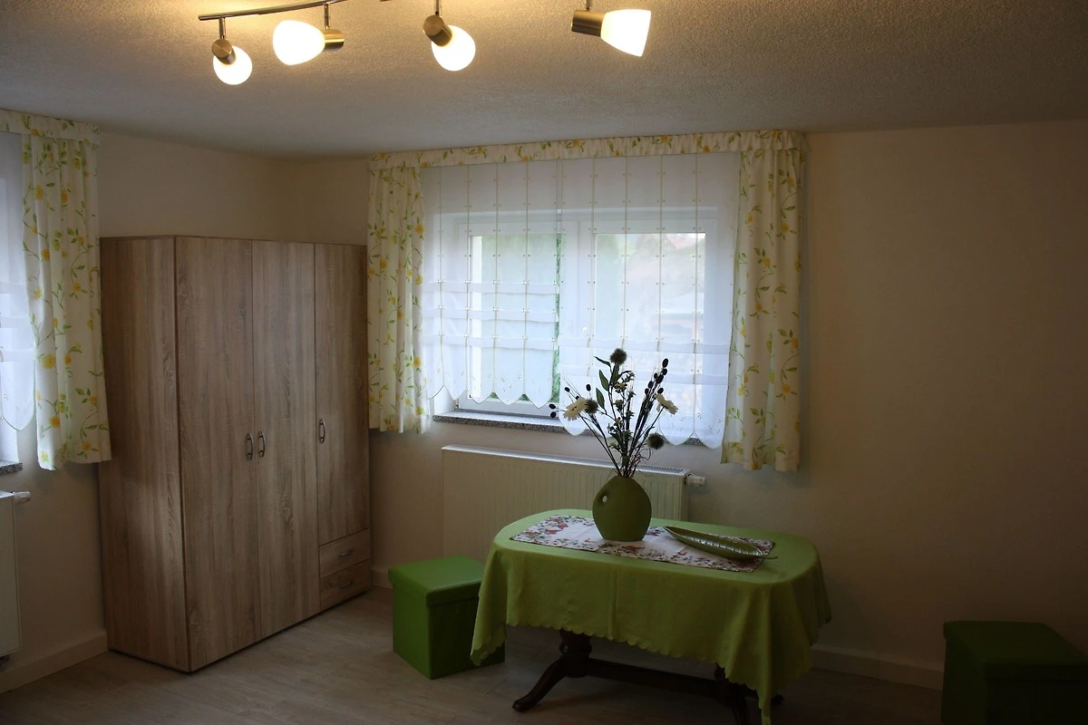 Unsere neue, helle im Erdgeschoss liegende Ferienwohnung in Lichtenhain bestehend aus 2 Schlafzimmern. Ein grosses Schlafzimmer mit Doppelbett & Doppelstockbett für 4 Personen sowie einem grossen Schrank. Ein weiteres separates Schlafzimmer mit Doppelbett und Schrank steht Ihnen für zwei Personen zur Verfügung.