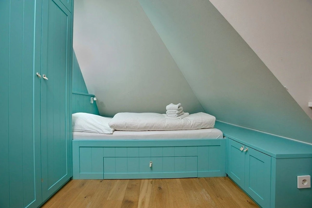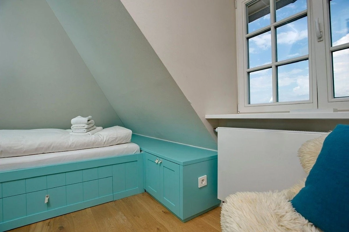 Die Wohnung befindet sich im Obergeschoss eines Friesenhauses, in einer verkehrsberuhigten Strasse auf einem sehr grosszügigen Grundstück. Die Wohnung hat ihren eigenen Hauseingang. Sie haben Zugang zum Garten und einer Terrasse und die Kinder haben eine grosse Wiese zum Spielen.