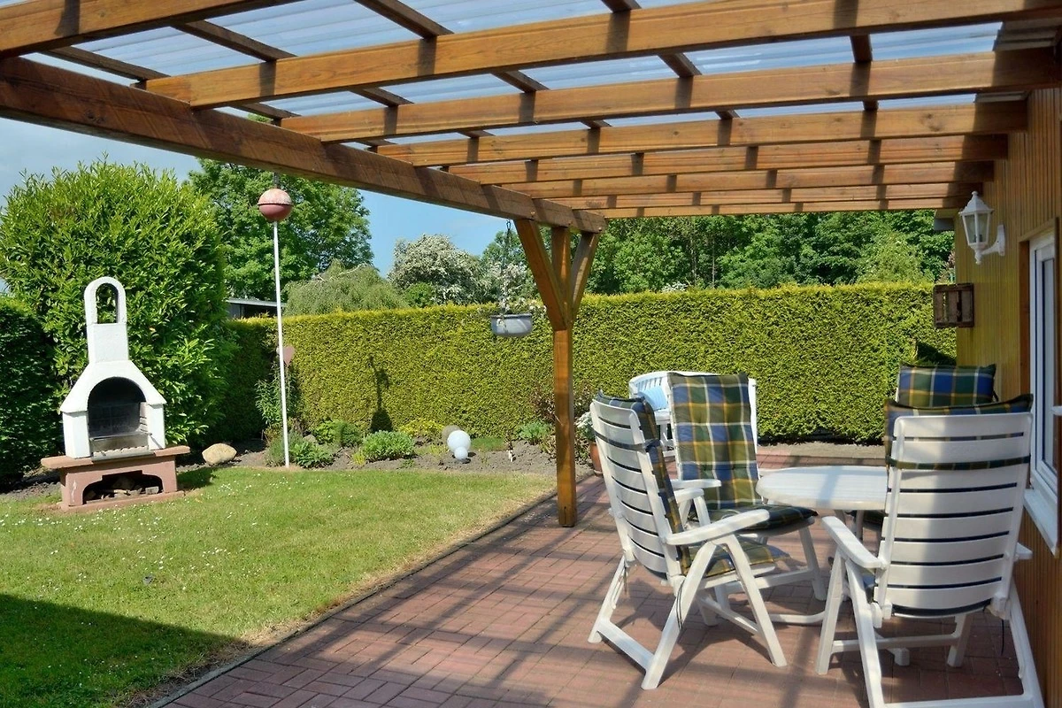 Sie können eine grosszügige Wiese mit einer windgeschützen Südterasse, Gartenmöbeln und Grill nutzen. Ein eingenes Gartenhaus macht auch bei schlechtem Wetter das Grillen zum Erlebnis. So können Sie Ihre Urlaubstage bei einem Gläschen Wein ausklingen lassen.