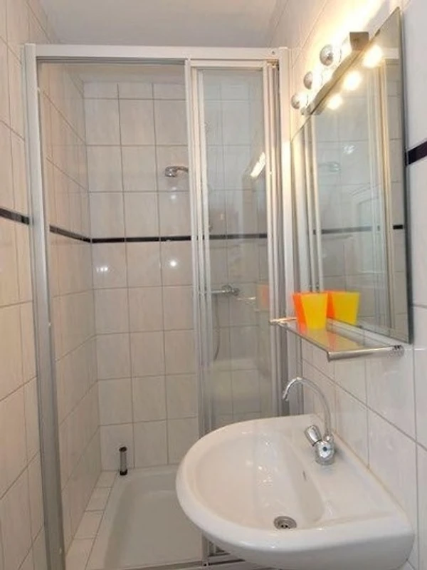 Die Wohnung verfügt über ein Schlafzimmer mit Doppelbett, ein Wohnzimmer mit Schlafcouch, Essküche, Dusche/WC. Die Küche ist mit Geschirrspüler, Mikrowelle, 4 Platten-Ceran-Kochfeld, Backofen, Kaffeemaschine, Wasserkocher und Toaster ausgestattet.