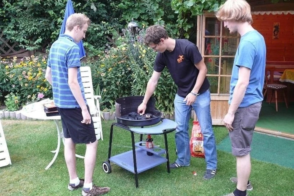 Parkplätze (z.T. Carport) am Haus. Der abgeschlossene Garten bietet eine Terrasse, Grill, geräumiges Gartenhaus, reichlich Gartenmöbel mit Auflagen und Sonnenschirmen.