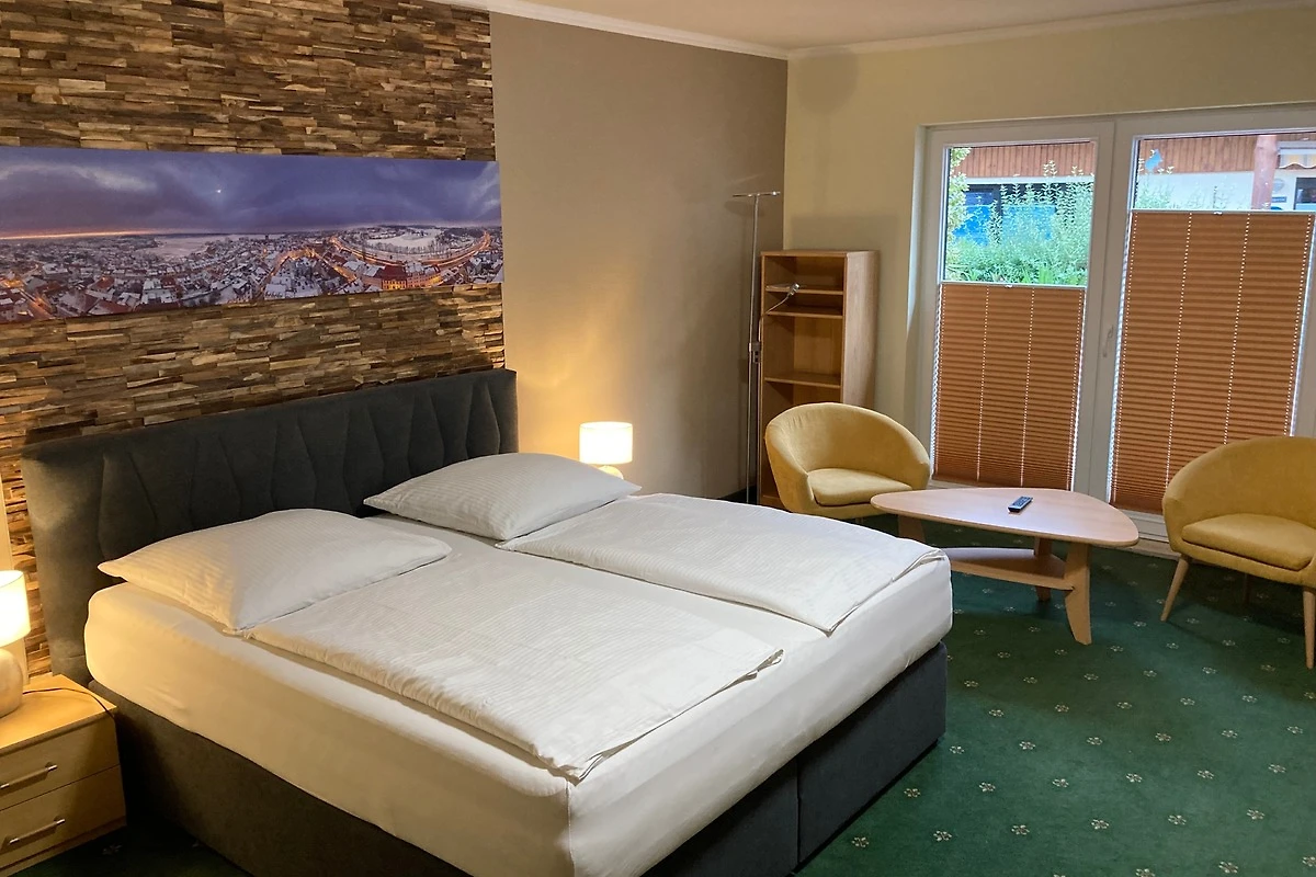 Die ehemalige Pension am Mühlenberg bietet den Gästen optimalen Hotelkomfort, denn hier hat jedes Schlafzimmer sein eigenes Bad (4x im Erdgeschoss+1x 1.OG) auf insgesamt ca. 220m² Wohnfläche. Das 5. Schlafzimmer kann man über eine Aussentreppe im 1.Obergeschoss erreichen. Für max. 12 Gäste stehen insgesamt 5 Doppelzimmer mit zwei Aufbettungen zur Verfügung. Sollte die Familie etwas grösser sein, besteht die Möglichkeit zusätzlich unsere Ferienwohnung am Mühlenberg für max. 4 Personen zusätzlich zu kombinieren. Im Mai 2021 renoviert, erstrahlt die Einheit in neuem Glanz. Das Ferienhaus liegt fussläufig zum Tiefwarensee nur ca. 600m vom Stadtzentrum entfernt. Die Ruhe und trotzdem die Nähe zur Innenstadt macht den Aufenthalt für jeden zum Vergnügen.