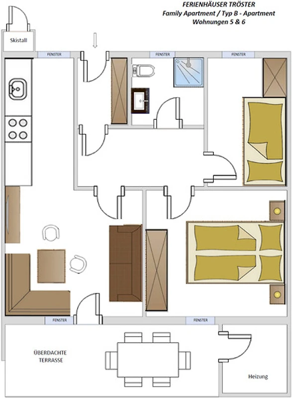 Natur, Ruhe, frische Luft, klares Wasser, Bergromantik und das einzigartige Gefühl wirklich frei zu sein, all dies und noch viel mehr erleben Sie bei uns in den Ferienhäuser Tröster. Unsere Appartements liegen zentral, aber dennoch ein wenig abseits des Ortstrubels. Gemütliche Stunden sind Ihnen in unseren Häusern somit garantiert. Die Gehzeit in den inneren Ortskern und zur St. Kathrein Therme beträgt nur 5 Minuten.