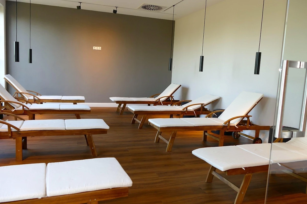 Wer sich auch im Urlaub hin und wieder an Maschinen auspowern und kräftigen möchte, ist im Fitnessstudio mit angrenzender Terrasse und weitem Blick bis hin zum Bodden herzlich willkommen.