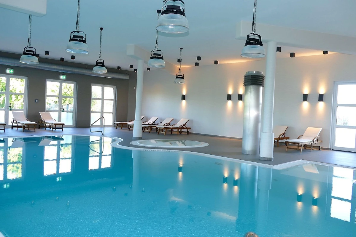 Diese Einrichtungen stehen unseren Feriengästen in der Nutzung (Schwimmbad/Sauna kostenfrei) zur Verfügung und befinden sich direkt in der Ferienanlage und sind nur wenige Fussminuten vom Ferienhaus entfernt.
