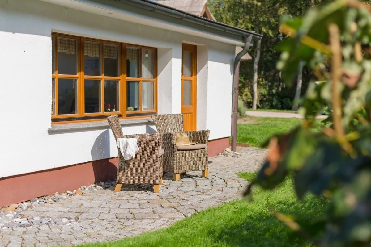Zum Haus gehört eine Rasenfläche mit Gartenmöbeln sowie 1 kostenloser Pkw-Stellplatz auf dem Grundstück.