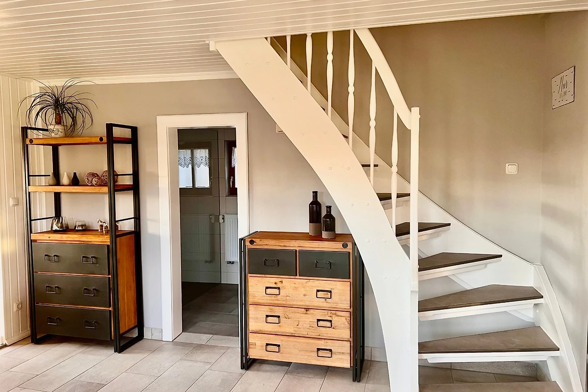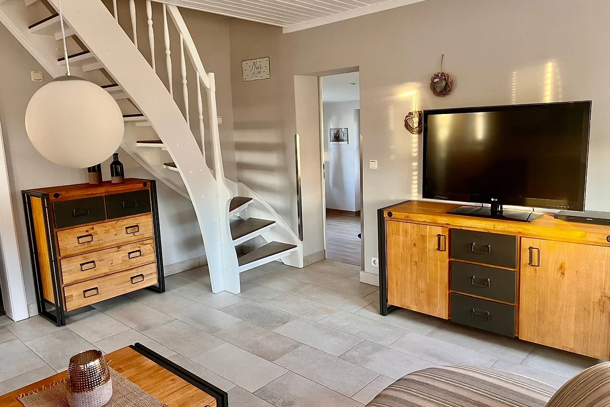 In der oberen Etage befinden sich die Schlafräume. Im unteren Bereich des Hauses befinden sich die Einbauküche mit Geschirrspüler, das Bad mit Dusche, WC und Waschmaschine (über Münzautomat), das Wohnzimmer mit Sat-TV und DVD-Player sowie das Esszimmer.