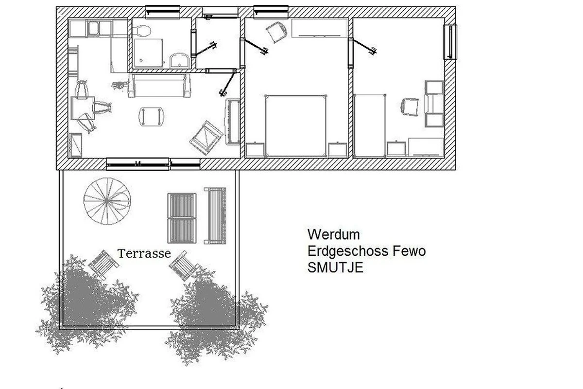 Die lichtdurchflutete Ferienwohnung ist gemütlich eingerichtet, so dass Sie sich vom ersten Urlaubstag an wohlfühlen können. Für Ihre Unterhaltung stehen WLAN, SAT-TV, Musikanlage, Bücher und Gesellschaftsspiele zur Verfügung. Die Terrasse ist während der Gartensaison mit Tisch und Stühlen möbliert.