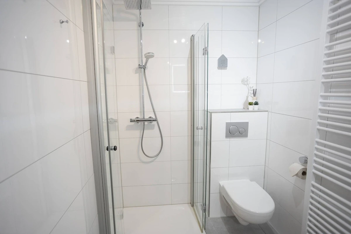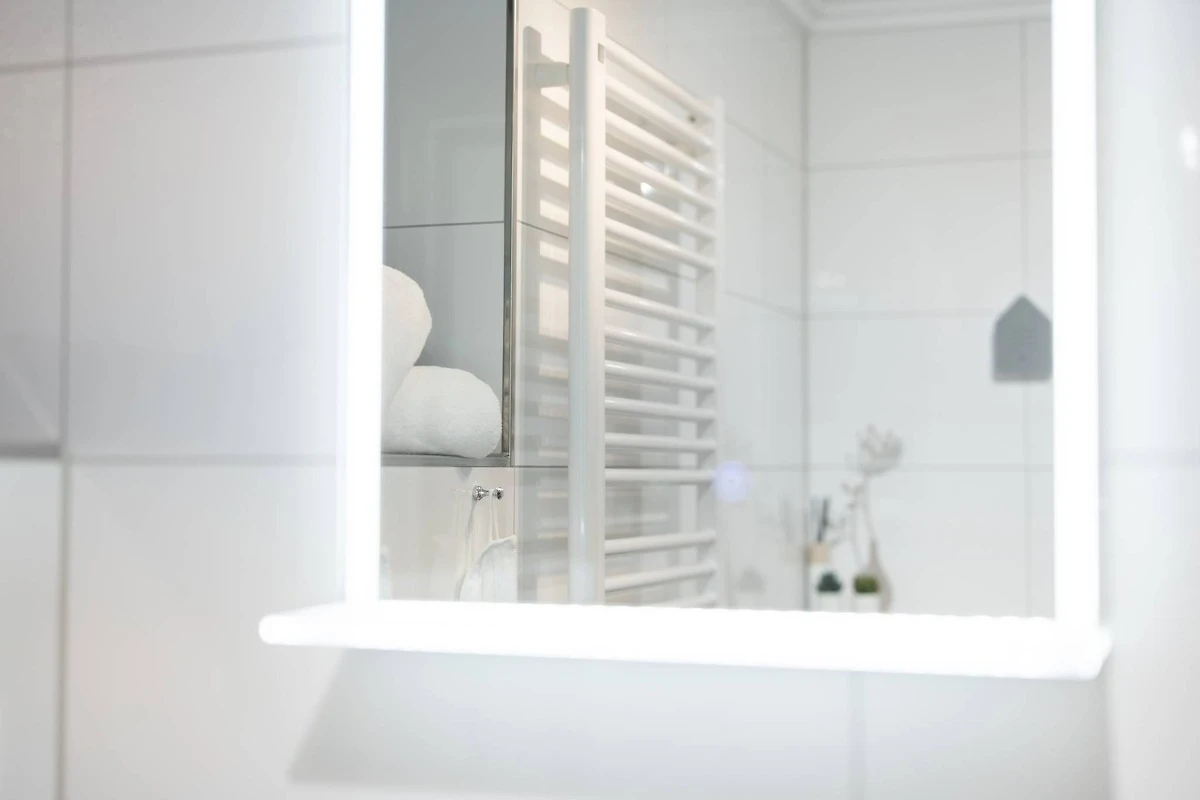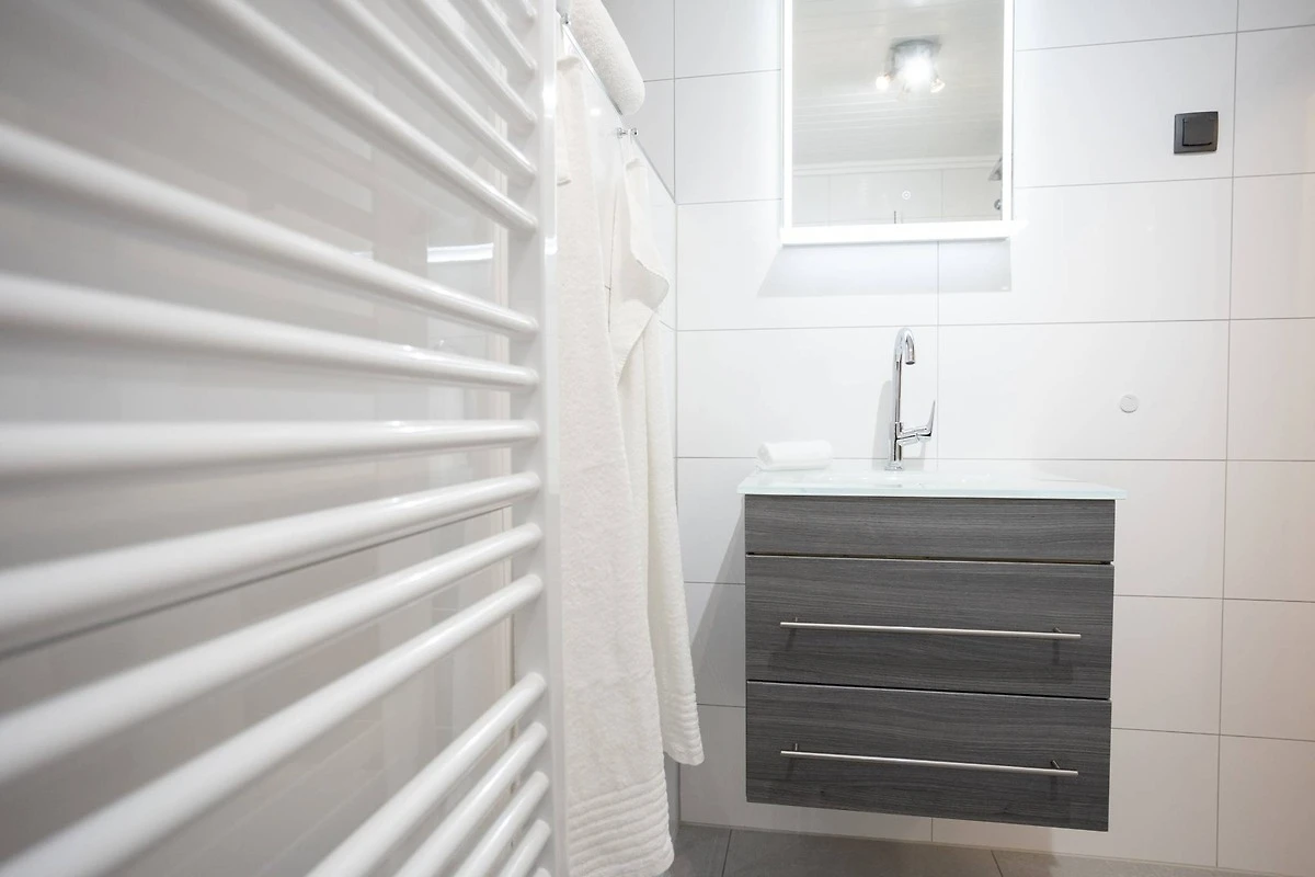 Im Küchenbereich finden Sie Kaffeemaschine, Wasserkocher, Herd, Backofen, Kühlschrank und Toaster. Der Geschirrspüler sorgt für Entlastung bei den Kochabenden. Im Wohnbereich können Sie es sich beim Fernsehabend auf Polstergarnitur oder im Sessel bequem machen. Im Smart-TV können Sie sich in Ihre eigenen Accounts der grossen Streamingdienste einloggen.