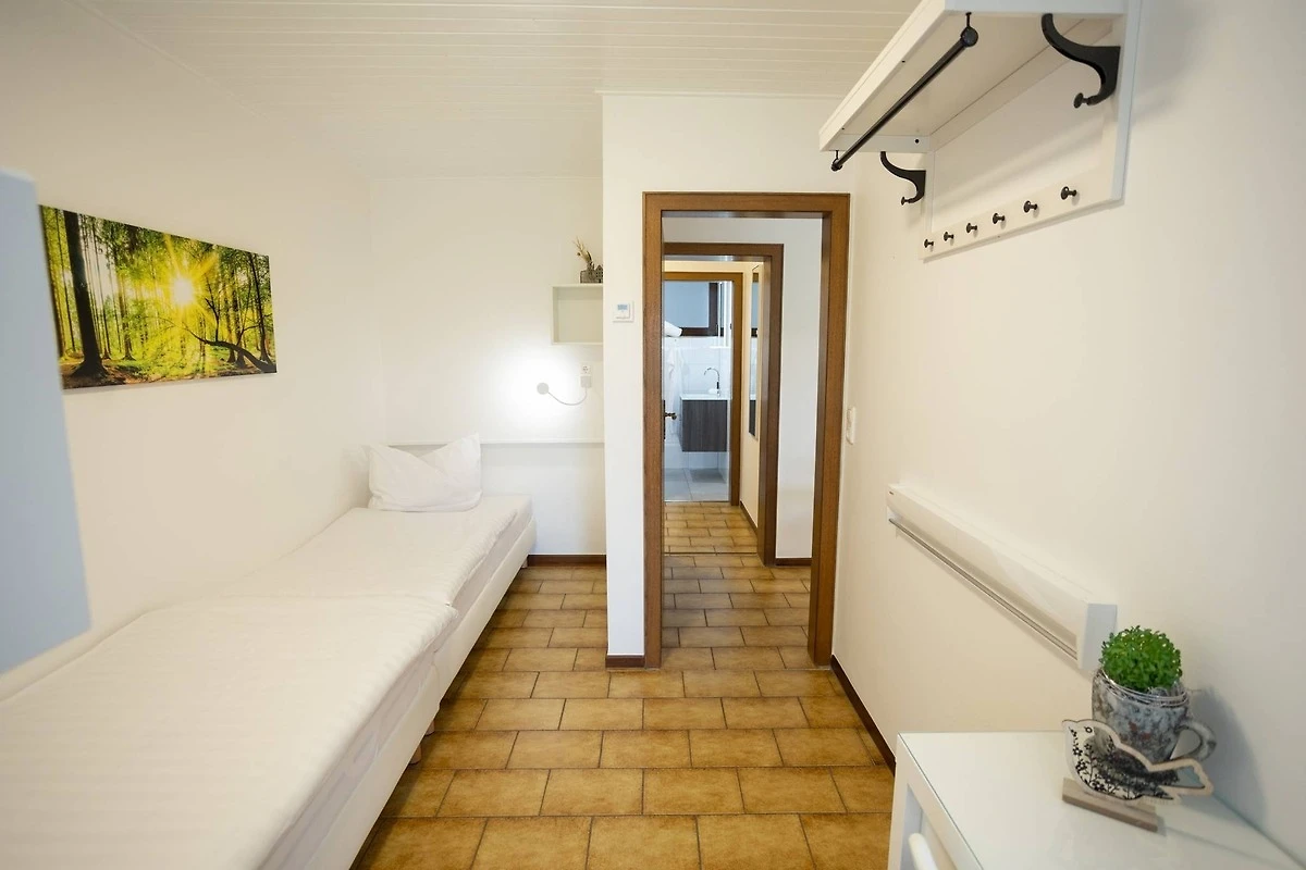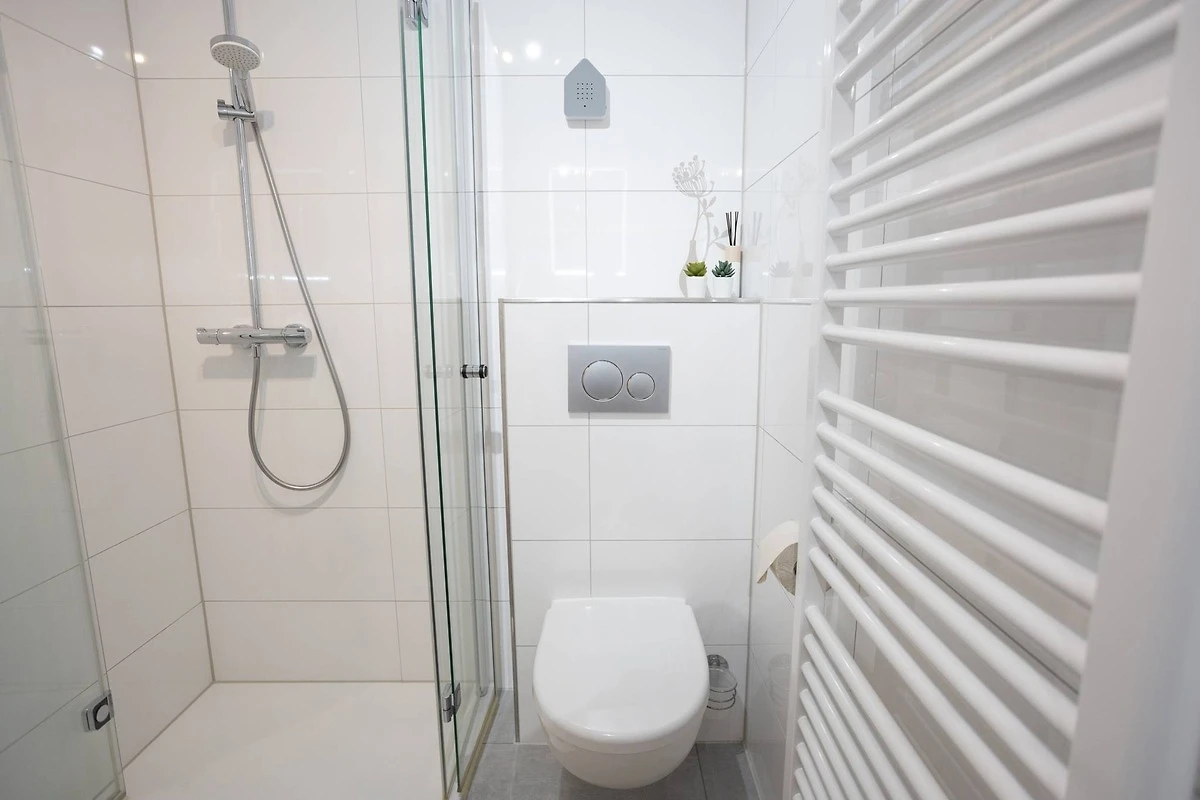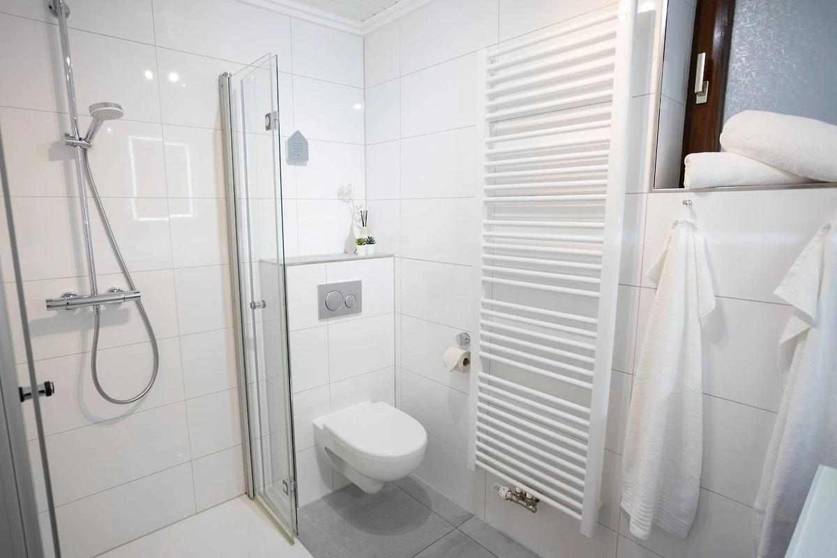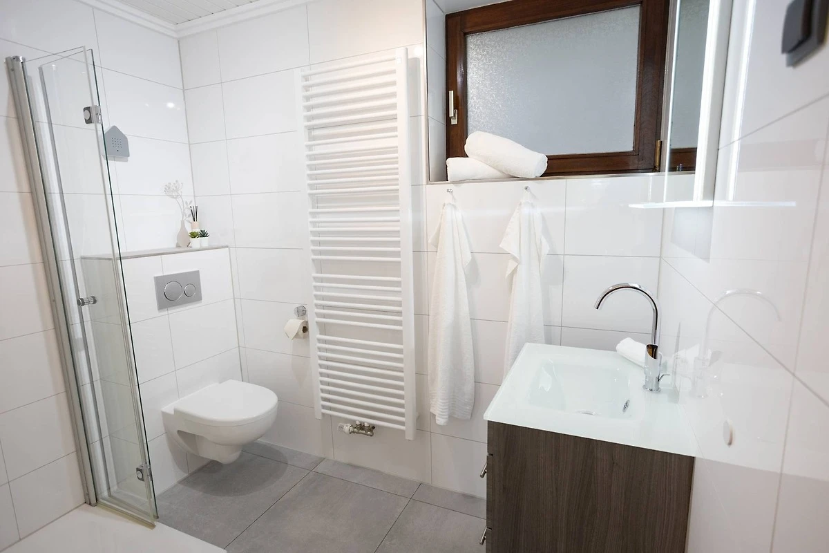 Im Küchenbereich finden Sie Kaffeemaschine, Wasserkocher, Herd, Backofen, Kühlschrank und Toaster. Der Geschirrspüler sorgt für Entlastung bei den Kochabenden. Im Wohnbereich können Sie es sich beim Fernsehabend auf Polstergarnitur oder im Sessel bequem machen. Im Smart-TV können Sie sich in Ihre eigenen Accounts der grossen Streamingdienste einloggen.