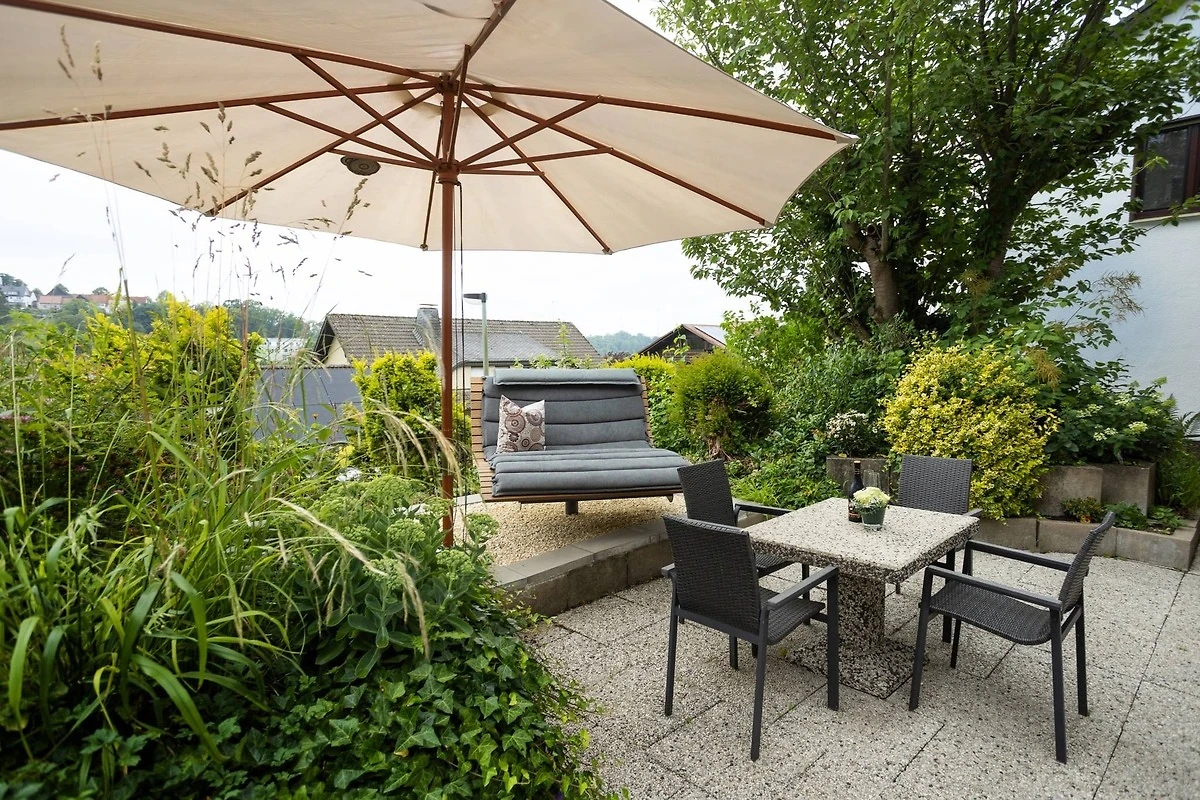 Die Ferienwohnung "Kirchblick" im Erdgeschoss bietet auf 55qm Erholung für 4 Personen zuzüglich eines Kleinkindes im Babybett. Auf der eigenen Terrasse, die ebenerdig an den geräumigen und sehr gemütlichen Wohn-/Essbereich angrenzt, finden Sie Gartenmöbel mit bequemen Auflagen und einen Grill.