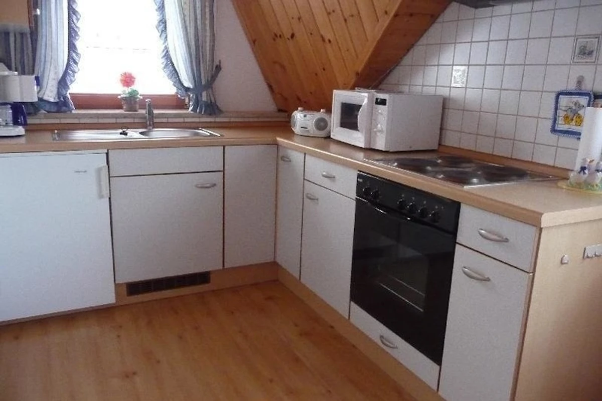 hat 2 Schlafzimmer, 1 Schlafzimmer mit 1 Doppelbett und 1 Einzelbett ( für 2 Erwachsene und 1 Kind möglich auch 3 Erwachsene) 1 Kinderzimmer mit 2 Einzelbetten (für 2 Kinder auch möglich für 2 Erwachsene),1 komplett ausgestattete Wohnküche mit TV, Bücher,Spiele,Kaffeemaschiene,Geschirrtücher,Wasserkocher, Herd, Mikrowelle,Geschirr,Kühlschrank usw. Ferienwohnung Nr.1 hat ein Balkon.Handtücher und Bettwäsche im Preis enthalten.