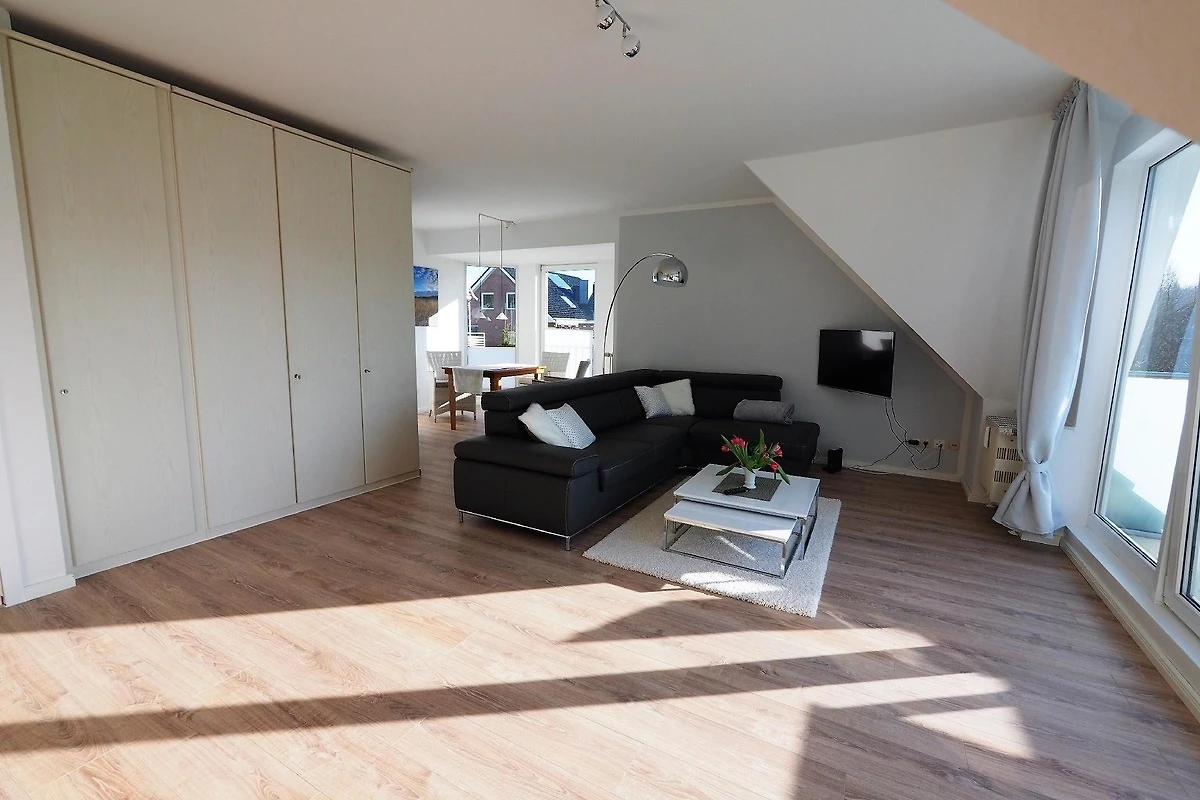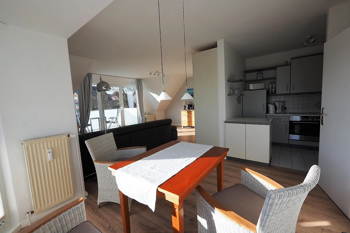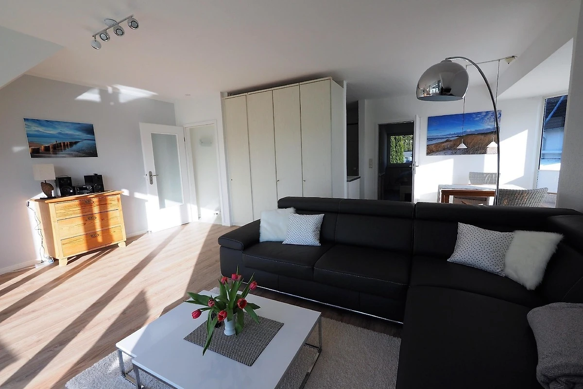 Das Apartment Silbermöwe in Scharbeutz erstreckt sich über 56 m² im 1. Obergeschoss und bietet ein liebevoll und modern gestaltetes 2-Zimmer-Komfort-Apartment. Der sonnige Wohnraum, ausgestattet mit hellem Vinylboden, beherbergt ein bequemes Lederecksofa, einen Couchtisch, eine Esecke mit vier Korbsesseln sowie einen Samsung Flachbildschirm-TV und eine Stereoanlage. Die Einbauküche überzeugt mit einer Komplettausstattung, einschliesslich Ceranfeld, Backofen und Geschirrspüler. Der lichtdurchflutete Essbereich ist im Erker untergebracht. Das separate Schlafzimmer verfügt über ein Doppelbett (1,60 m) mit Verdunkelungsrollo und Fliegengitter. Das moderne Duschbad ist gefliest und bietet alle notwendigen Annehmlichkeiten. WLAN ist kostenfrei verfügbar. Rauchen und Haustiere sind nicht gestattet. Ein PKW-Carport ist inkludiert, es stehen auch kostenlose öffentliche Parkplätze in der Nähe zur Verfügung. Maximal zwei Erwachsene und ein Kind bis 4 Jahre sind willkommen.