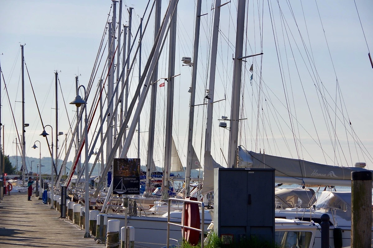 Einkaufen 500m; Frisör 500m; Arzt 500m; Hafen 500m; Gaststätten und Cafés 500m; Naturstrand 2km