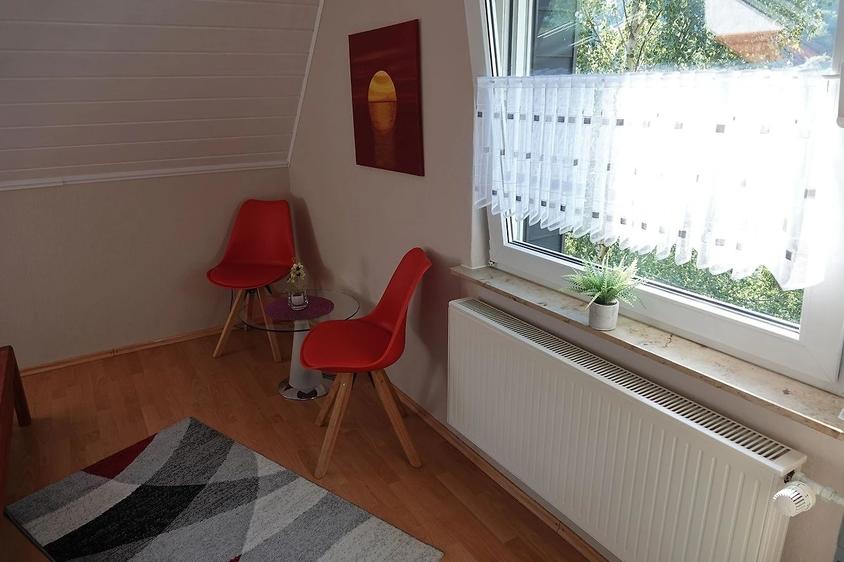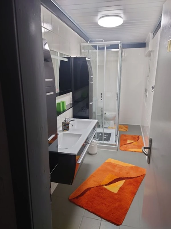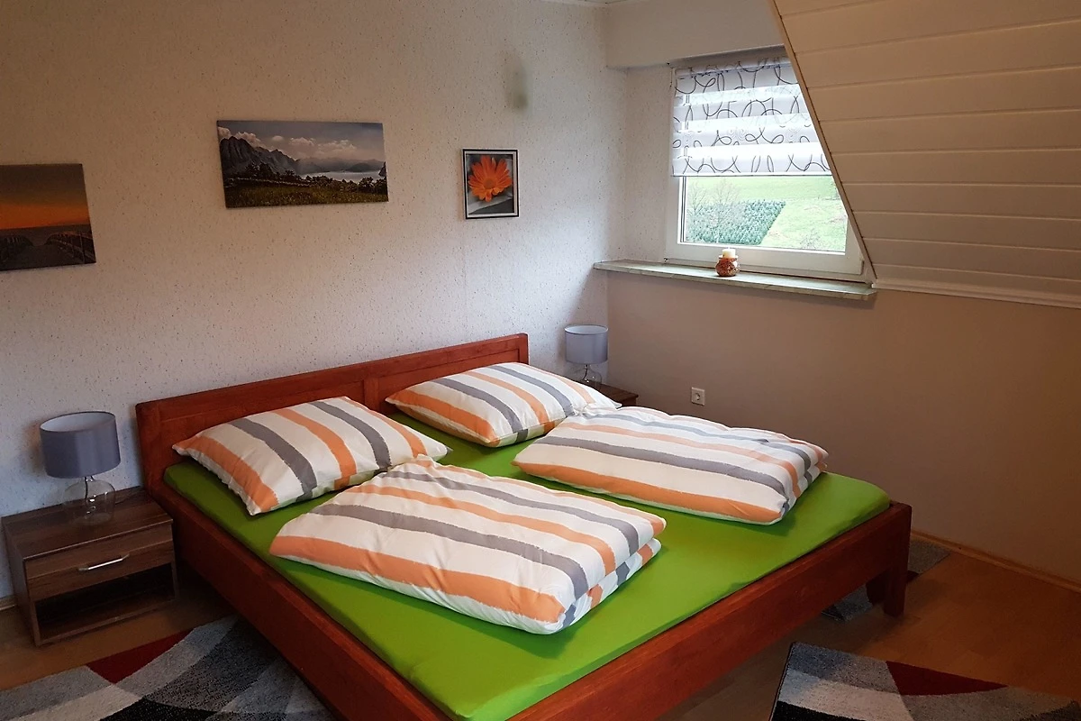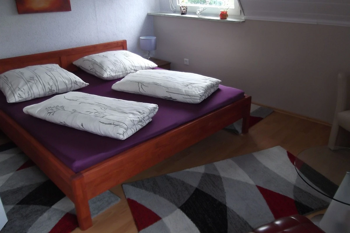 Pro Buchung bis zwei Personen hat man nur Anspruch auf das untere Schlafzimmer und das untere Badezimmer. Alles auf einer Ebene.