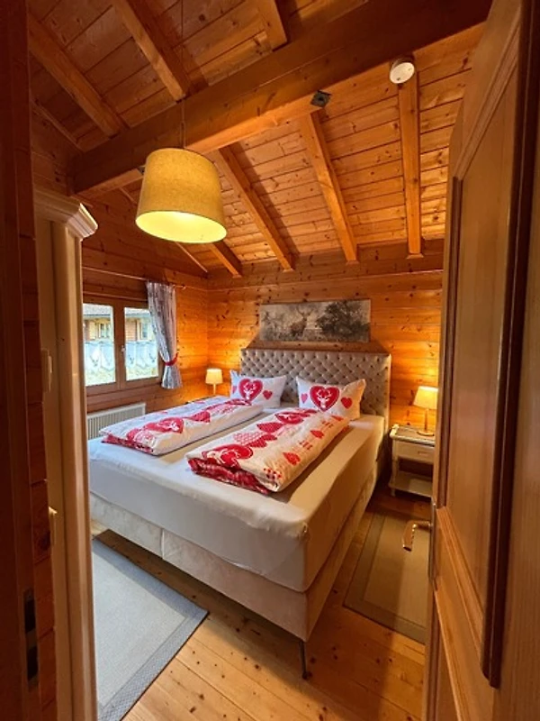 1 Schlafzimmer mit Doppelbett und grossem 3-türigen Kleiderschrank.