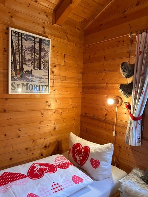 1 Schlafraum mit zwei getrennten Betten und eingebautem Hochbett und genügend Stauraum für Kleidung.