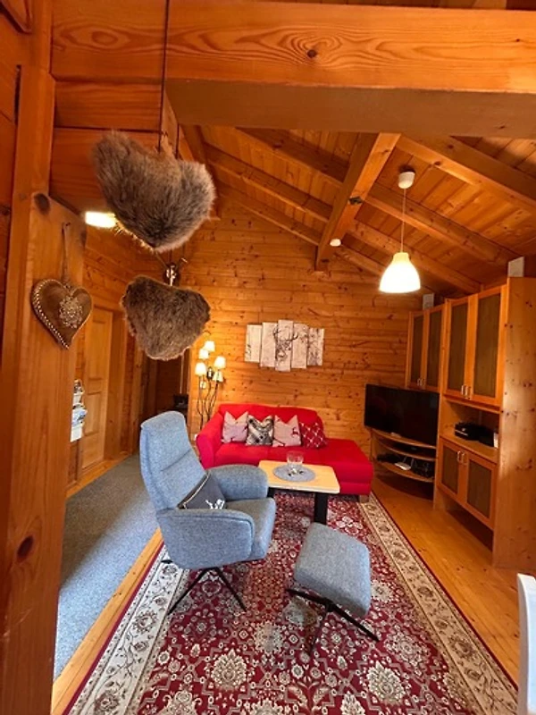 1 Wohn- / Essraum mit bequemer Sitzgruppe, Schrankwand mit grosszügiger Unterbringung von Geschirr und Gläsern für 10 P, SAT-Digital-TV, Stereoanlage mit CD-Player, Videorecorder / DVD-Player, Essecke (Tisch 1,0 m x 1,8 m) und schnurlosem Telefon für Notrufe und Rufannahme.