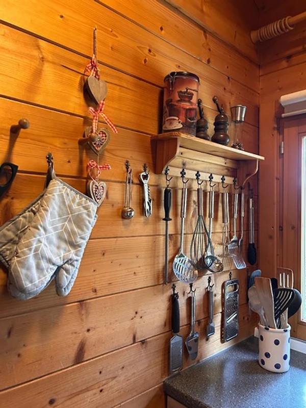Voll ausgestattete Küche mit Geschirrspüler, Kühlschrank mit Tiefkühlfach, Cerankochfeld mit Grill-Backofen, Toaster, Kaffeemaschine, Wasser- und Eierkocher, Handmixer sowie allen erforderlichen Bestecken und Küchenwerkzeugen.