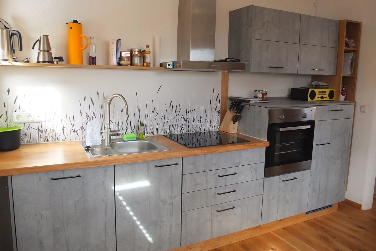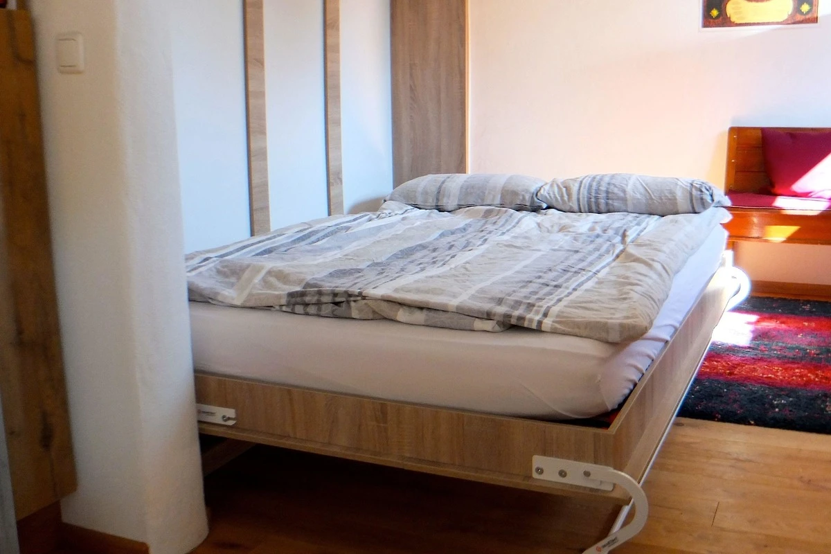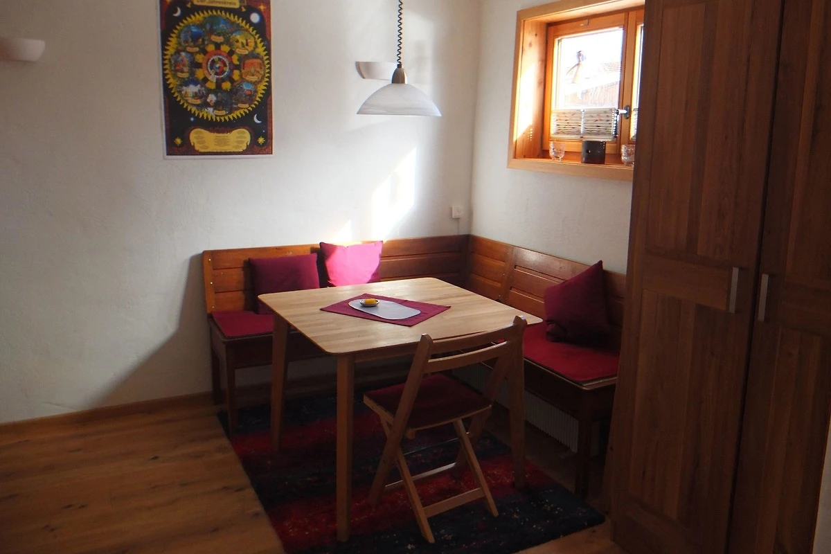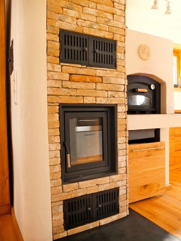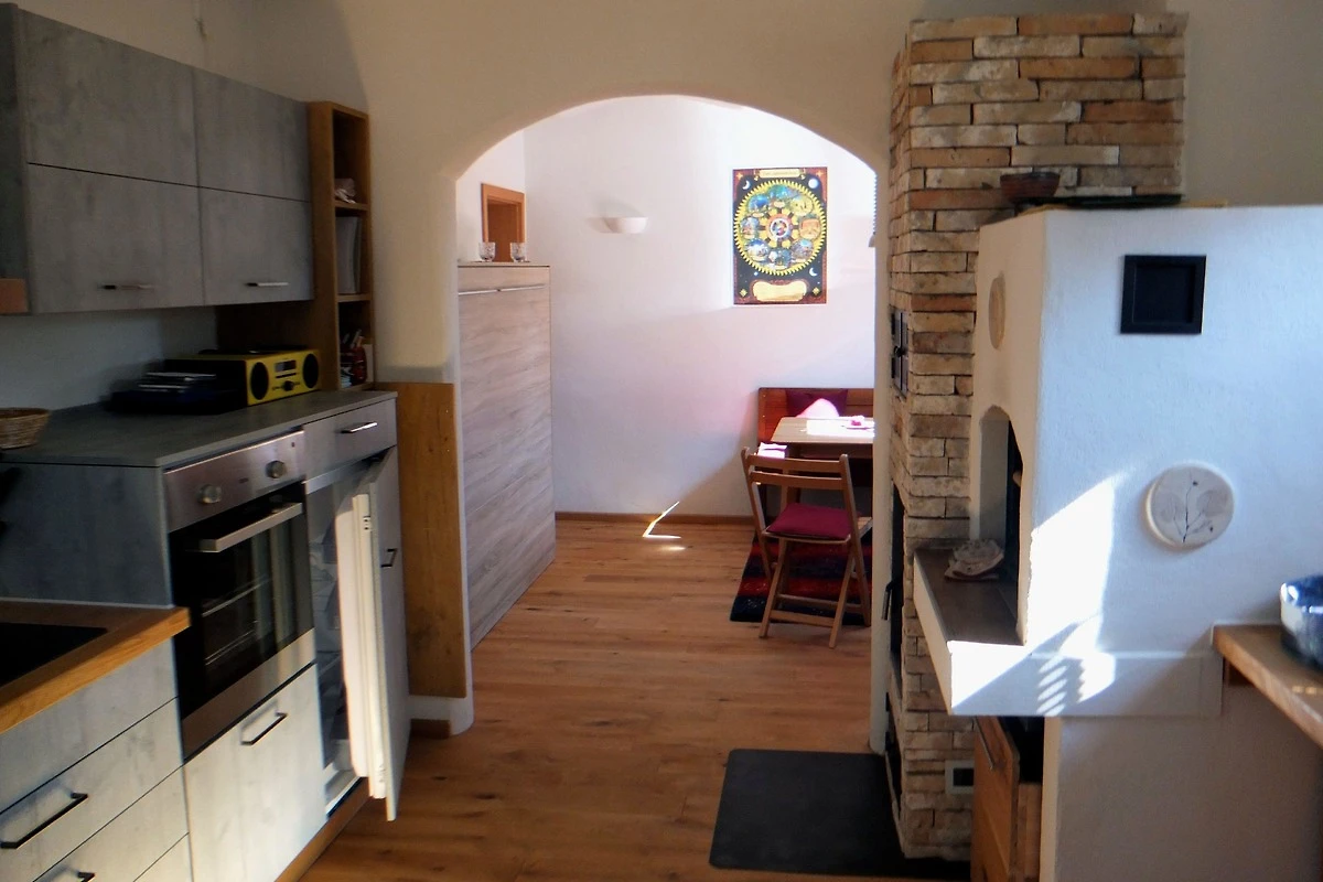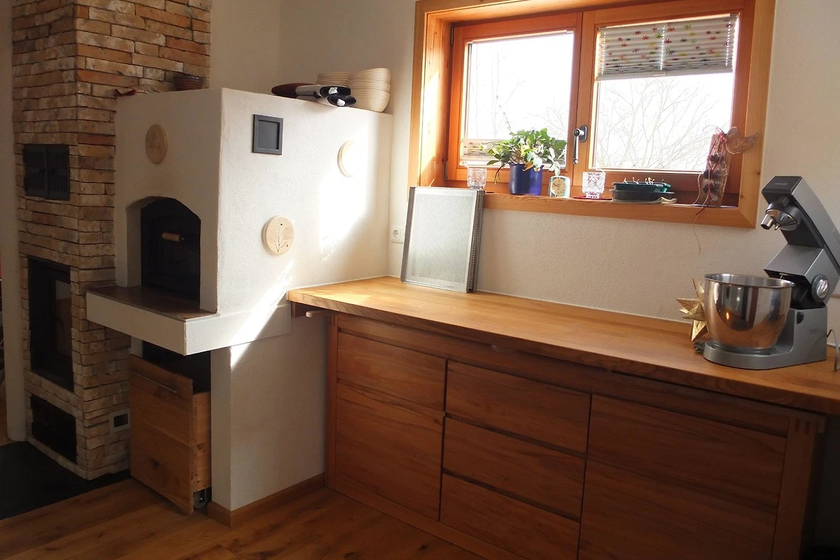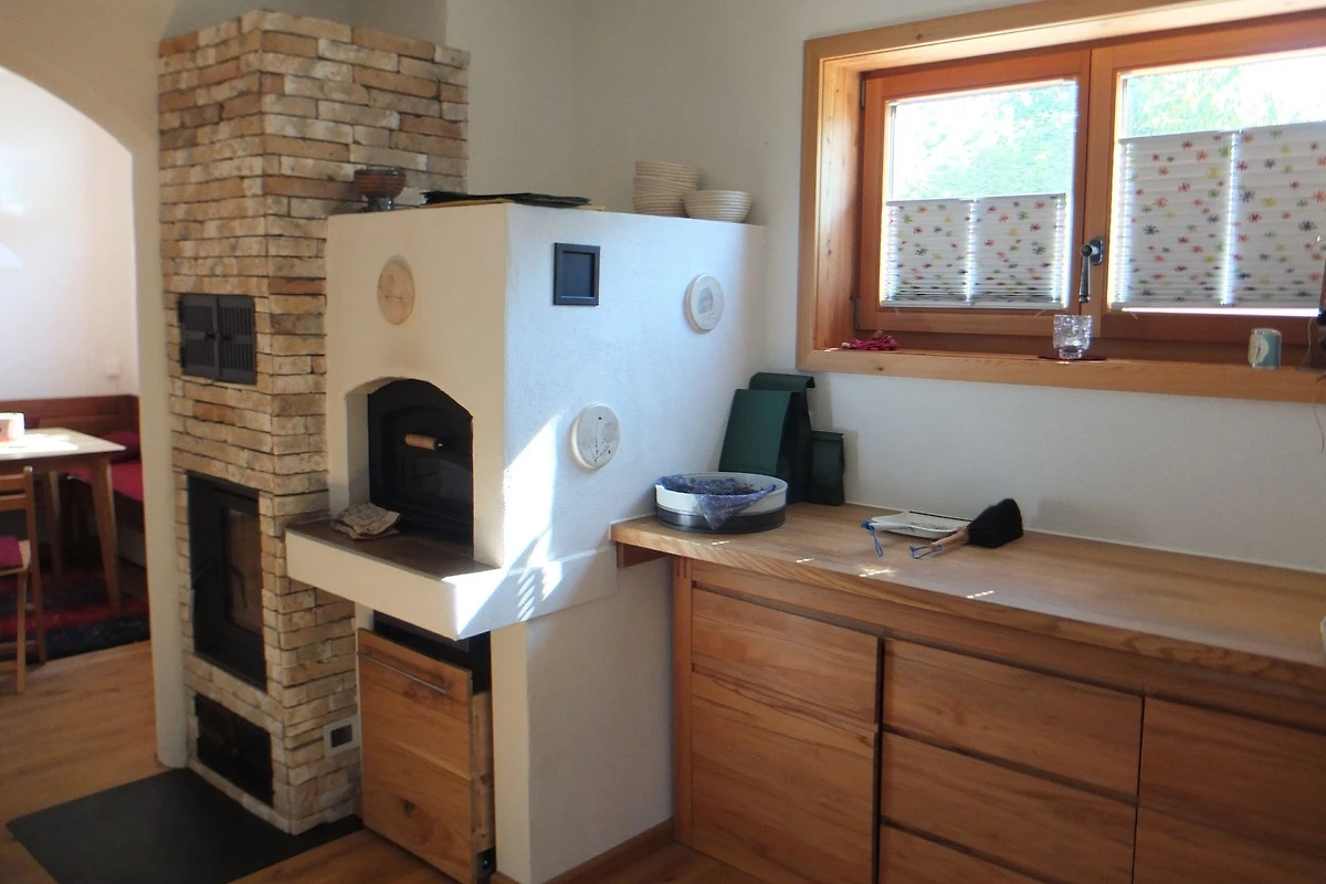 Komfortable Küche mit allen notwendigen Küchenutensilien. Platzsparendes Schrankbett 140x200. Eichenparkettboden Vollholz. Schränke weitgehenst aus Masivholz. Bad mit Dusche Waschbecken und Toilette. Wenns mal kalt wird, mit Holz über einen Kachelofen mit Sichtfenster, oder über Elektroflächenspeicherheizung.
