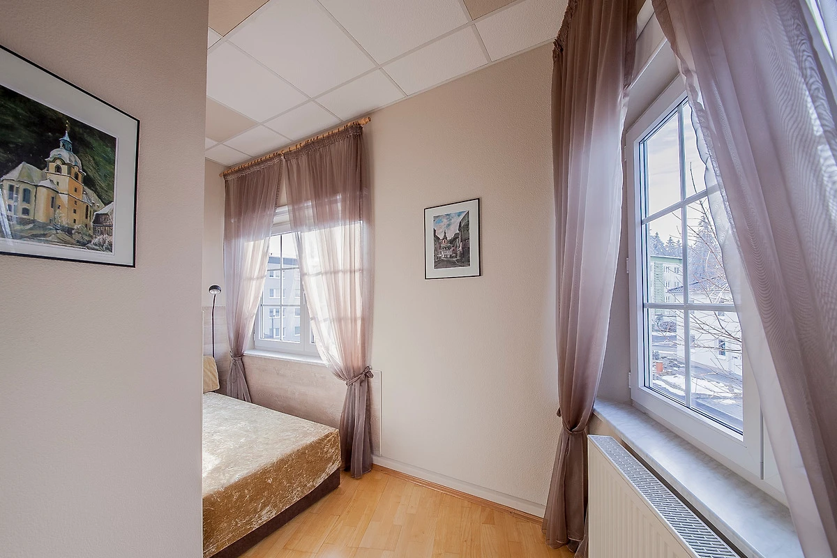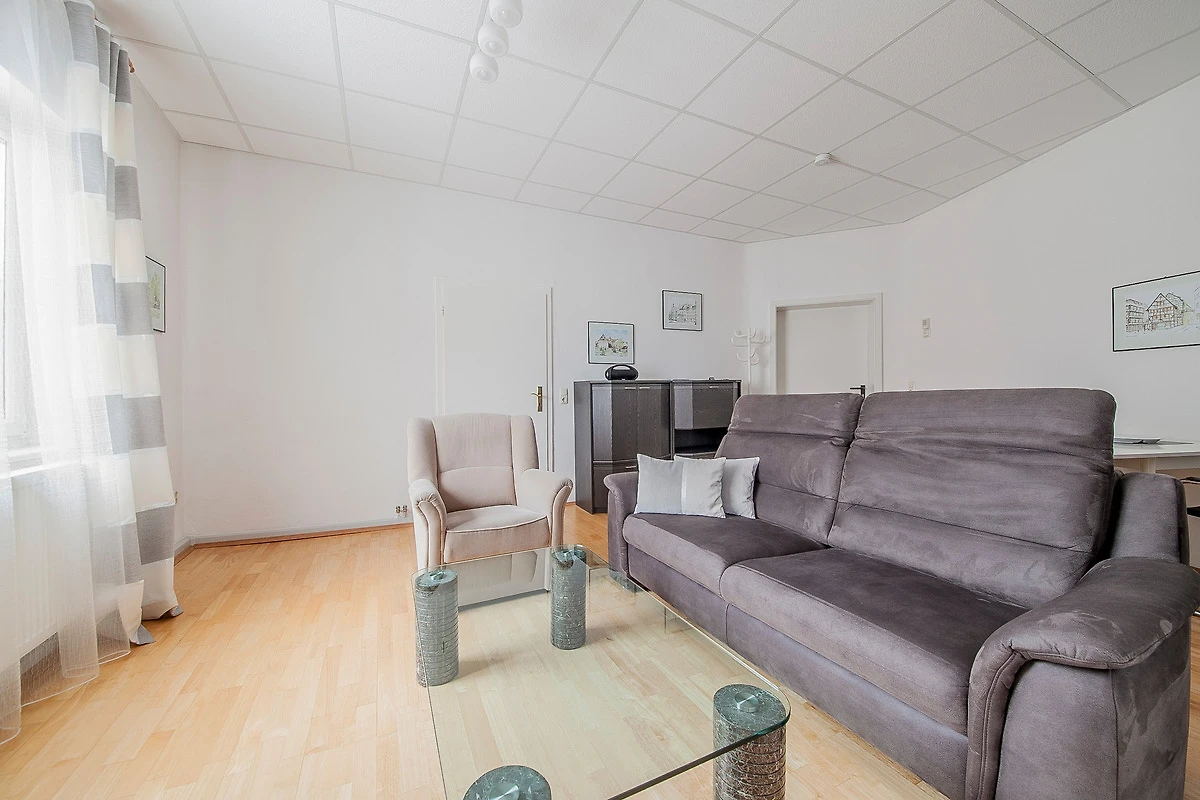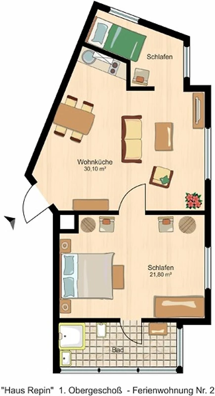 Auf etwa 60 m² bietet Ihnen unsere Ferienwohnung 2 reichlich Platz für 2 bis max. 4 Personen. Das Apartment ist modern und komfortabel mit hochwertigen Stoffen (z.B. Bettwäsche teilweise aus Maco-Satin) und neuen Medien ausgestattet und befindet sich im 1. Obergeschoss des Haus Repin.